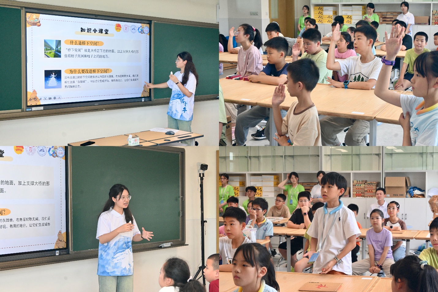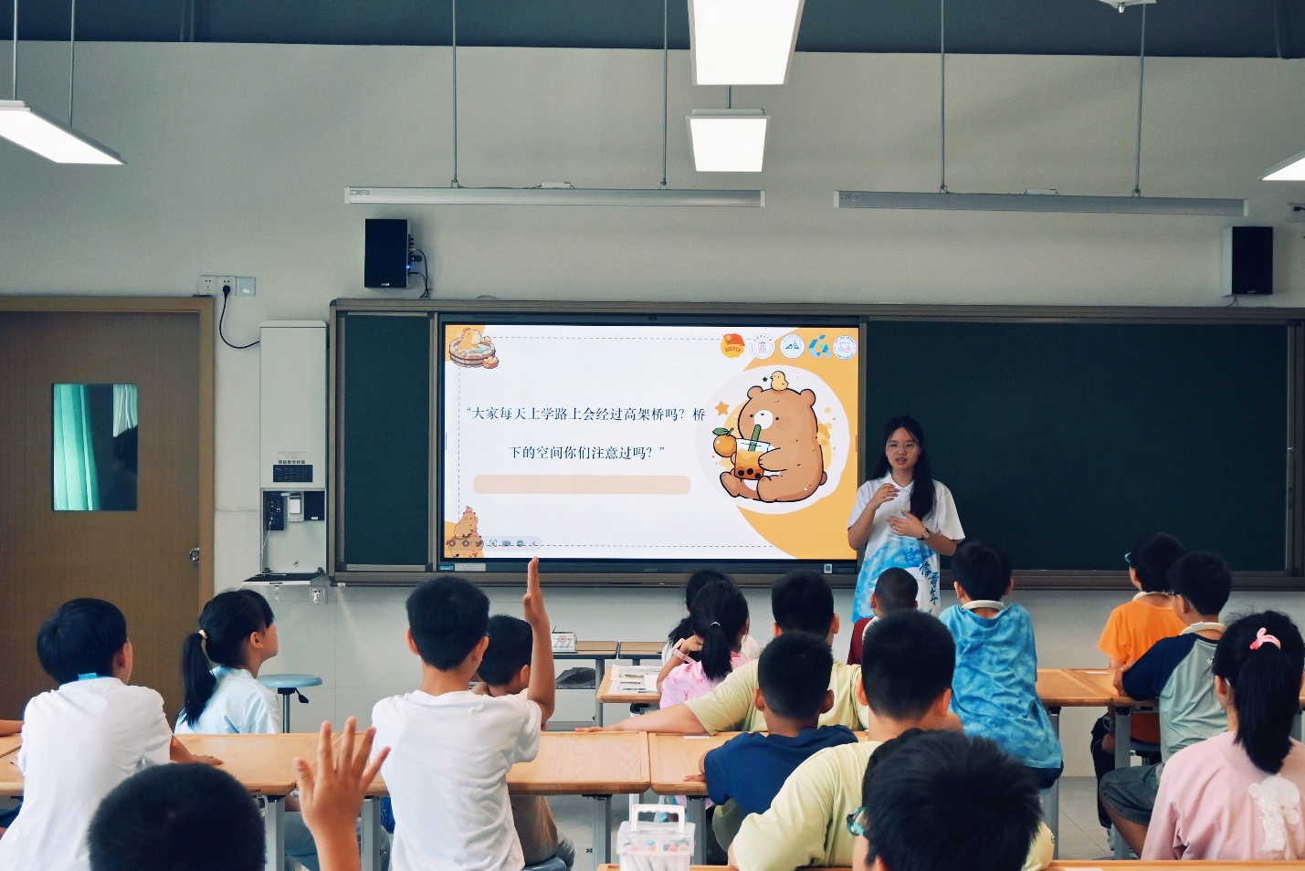 为积极响应国家关于城市更新与空间资源高效利用的发展理念,深化大中小学思政教育一体化建设,美加墨世界杯官方网站桥下空间调研实践队于2025年7月8日走进上海师范大学附属浦东临港科创小学,为暑期爱心托管班的孩子们带来了一场“桥下空间小课堂”科普宣讲活动。此次活动旨在播撒城市空间治理的种子,激发少年儿童对身边环境的观察力与创造力,以实际行动践行高校服务社会、科技赋能城市的青春使命。