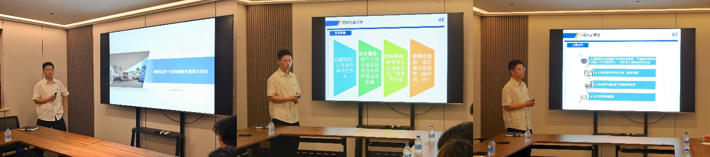 两场专题分享从技术与管理维度为实践队成员们带来系统启发:弘路公司张天成在 “特殊结构桥梁养护” 板块,通过典型桥梁结构解析,展现GPS 轨迹跟踪、无人机检测及水下机器人等信息化技术在安全监测中的应用,为桥下空间安全管控提供技术范式;而交建中心汤青嵩在 “桥下空间创新化管理” 板块,则以 “公益优先、成本覆盖” 原则为核心,结合智能监控技术构建管理体系,并借鉴多地实践案例,印证 “以用促管” 模式的可行性,为空间高效利用提供思路。