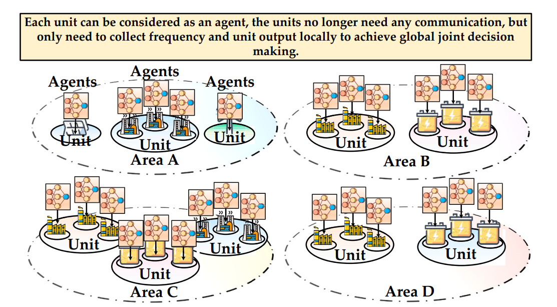 针对在基于性能的频率调节市场运行的互联电网中,因策略不协调和联络线功率波动导致运营商利益冲突加剧、频率波动频繁的问题,为提升电网稳定性,李嘉文副教授和崔昊杨教授及其团队创新性提出模仿鱿鱼分布式神经决策机制的鱿鱼启发协同负荷频率控制方法,将区域单元视为独立智能体,仅依赖本地信息实时决策以避免跨区通信延迟或错误;并引入采用混合课程学习策略的自动课程多智能体深度元演员-评论家算法,实现复杂随机电网中多目标多区域的高效协同学习与鲁棒控制;基于中国南方电网四区模型的仿真验证表明该方法能有效减少功率波动。其工程价值在于为多运营商互联电网提供了可规避通信瓶颈、有效协调利益冲突并显著抑制频率及联络线功率波动的实用化频率控制新方案,推进了智能电网稳定运行技术的发展。该成果以《Bionic cooperative load frequency control in interconnected grids: A multi-agent deep Meta reinforcement learning approach》为题发表于《Applied Energy》(中科院一区,IF=10.1)。