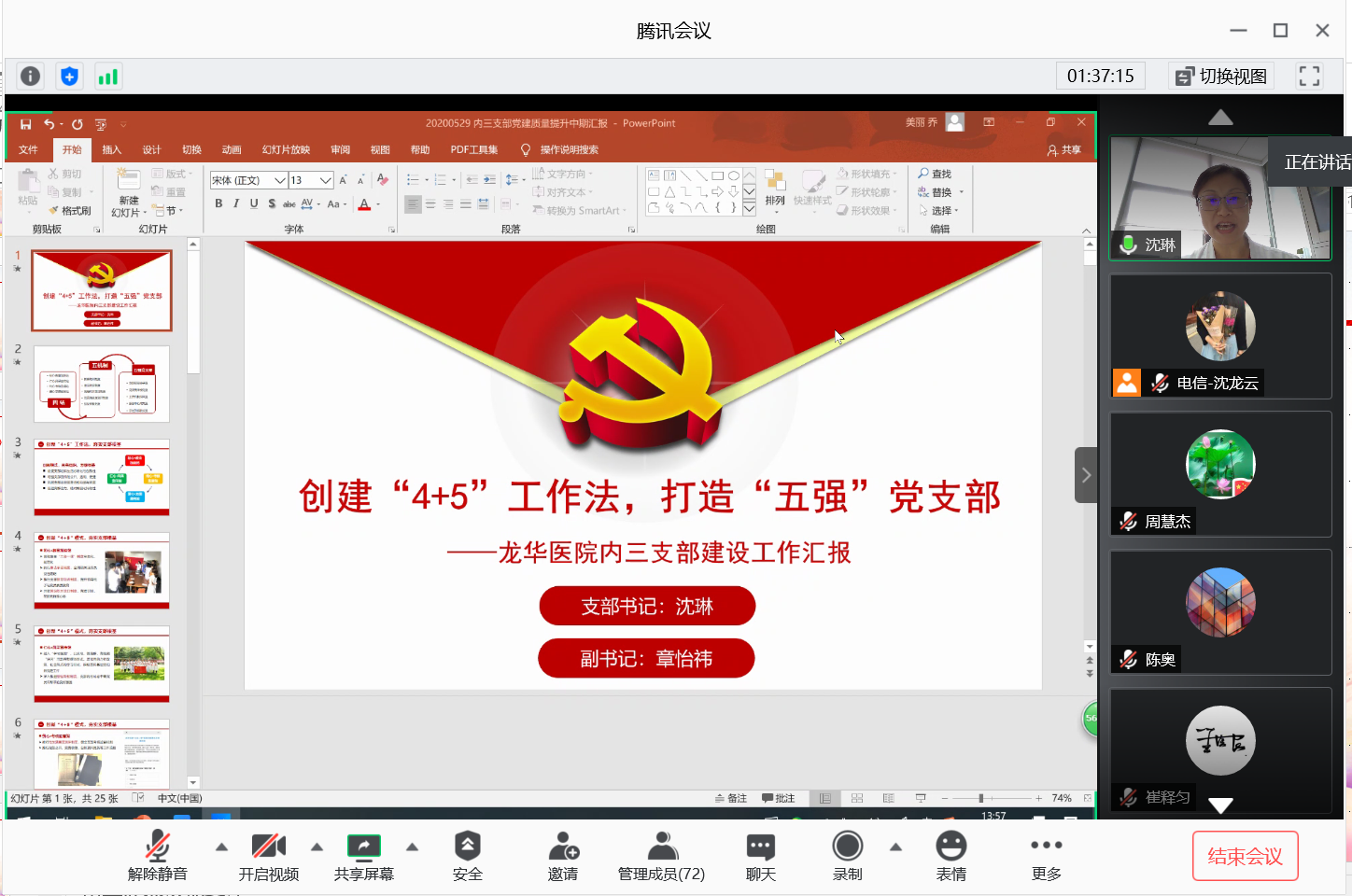 样板引路 典型示范。围绕 “全国党建工作样板党支部”分享创建经验。邀请首批创建单位,电子科学学科教工党支部书记杨芳分享主题为《电亮基层党建新征程 信创立德树人新作为》,上海中医药大学龙华医院内科第三党支部书记沈琳分享主题为《创建“4+5”工作法,打造“五强”党支部》。他们分享了支部创建过程中的工作方式方法,围绕支部工作建设,展现了他们在党支部工作中的规范性细节、推动性作用、创新性思路。