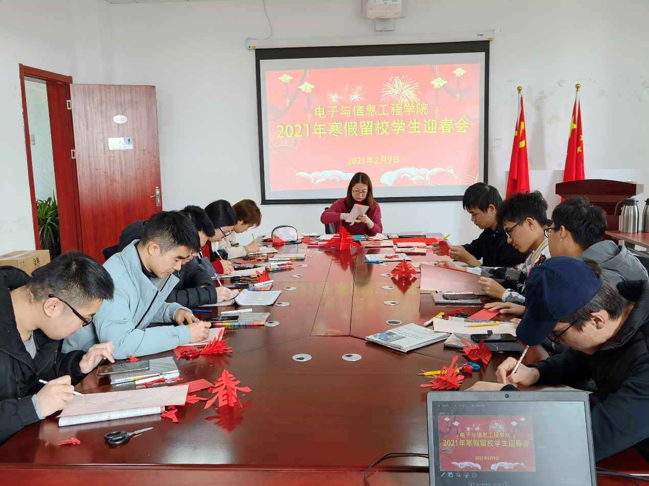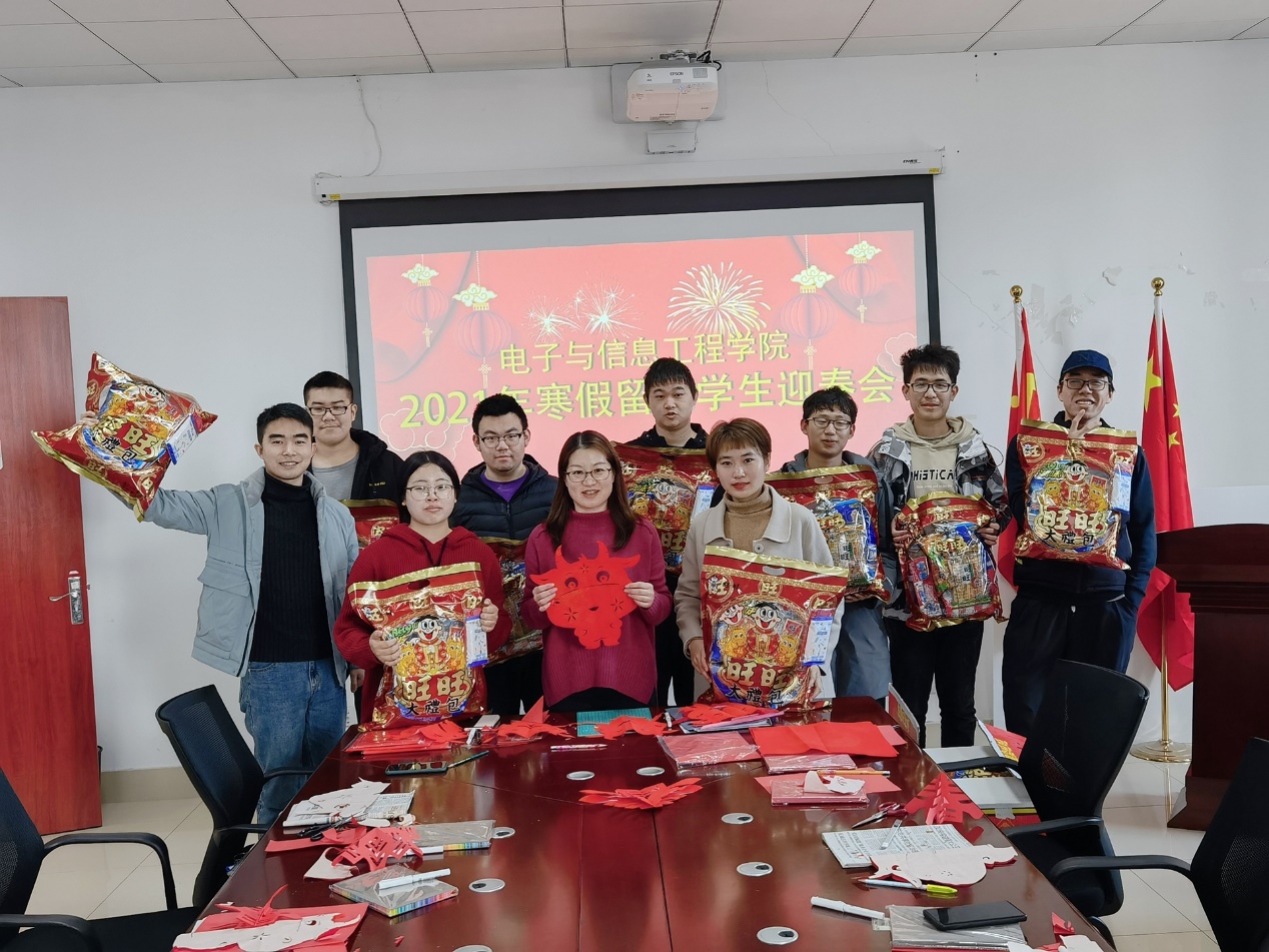 2月9日阳光明媚,美加墨世界杯官方网站2021年寒假留校学生迎春会在学院402会议室召开,学院党委副书记周冬梅和留校的11名 本科生、硕士生欢聚一堂。