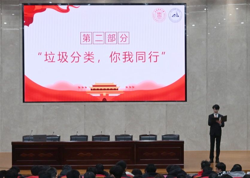 一个人的爱国,由实际行动体现;一座城的改变,从垃圾分类开始。紧接着大会通过易班平台,进行了以“垃圾分类”为主题的知识竞赛。在竞赛中,同学们踊跃答题,在展现自己知识与能力的同时,也对垃圾分类的具体实行和其背后的深刻意义有了更进一步的深入认识。
