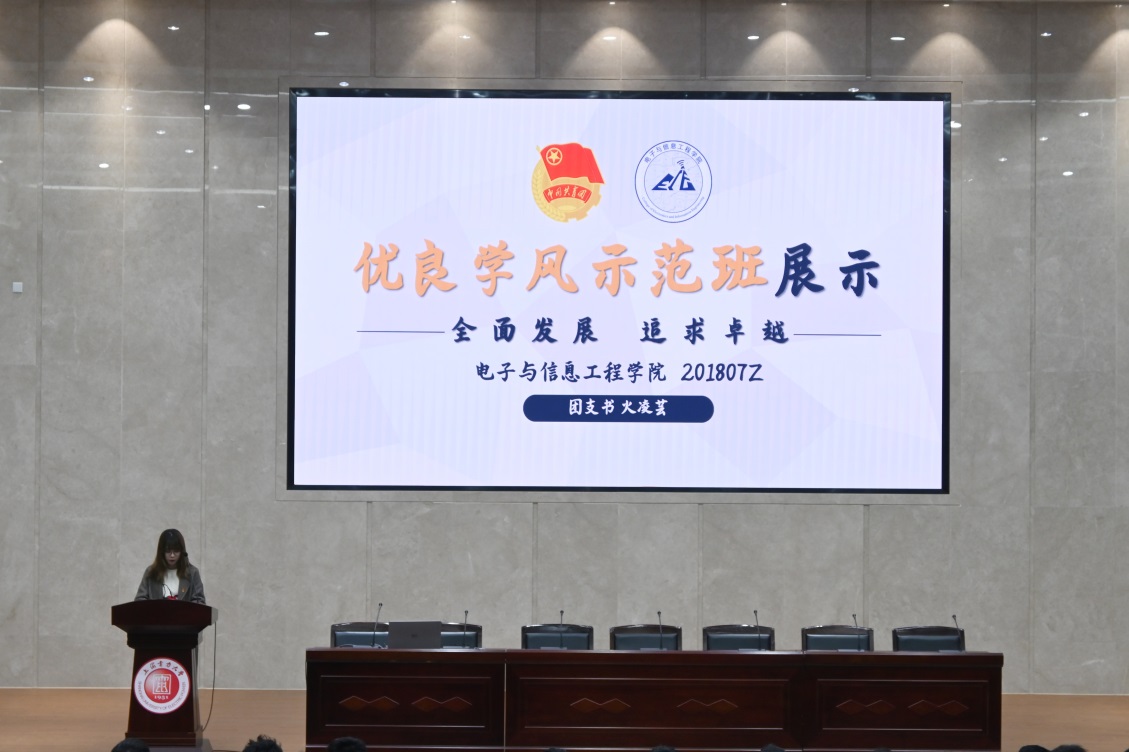 学风是大学精神的集中体现,学风的建设需要班级所有同学齐心协力,共同努力。大会第三部分由校优良学风示范班2017112班班长李茵怡与201807Z班团支书火凌芸进行了班级学风展示,并分享了自己对班级建设和未来展望的思考,同学们认真聆听,并积极对本班的班级学风建设建言献策。