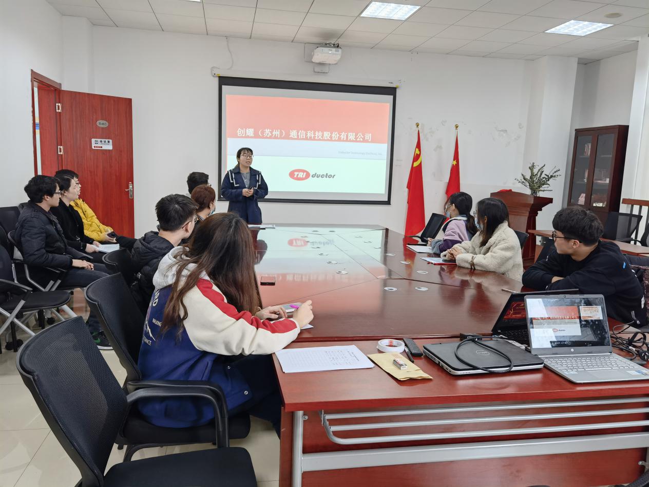 3月24日下午,创耀(苏州)通信科技股份有限公司2021届美加墨世界杯官方网站专场宣讲招聘会在临港校区电信楼B402室成功举办。创耀(苏州)通信科技股份有限公司人事专员汤秋玮、王婕、夏燕、2019届校友黄文龙,美加墨世界杯官方网站毕业班辅导员崔释匀、任帼菲以及世界杯官网10余名2021届本科毕业生参会。