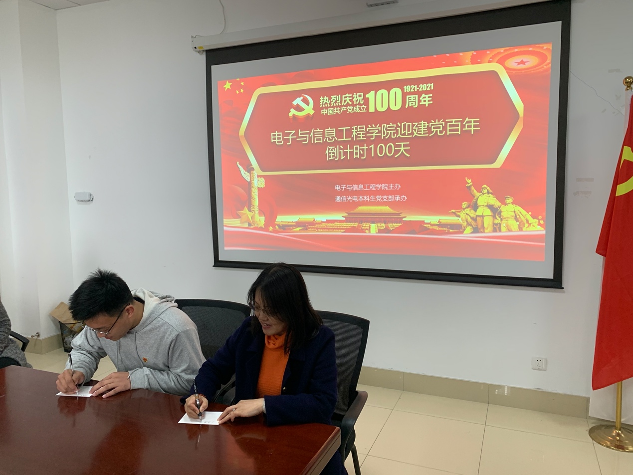 3月23日,建党100周年100天倒计时之际,美加墨世界杯官方网站举行“砥砺峥嵘百年路,翘首共绘锦绣程”建党百年倒计时100天活动启动仪式。学院党委书记潘耀芳、党委副书记周冬梅、党委委员朱武、曹以龙,教师党员和学生党员参加,会议由通信光电本科生党支部书记王思绮主持。