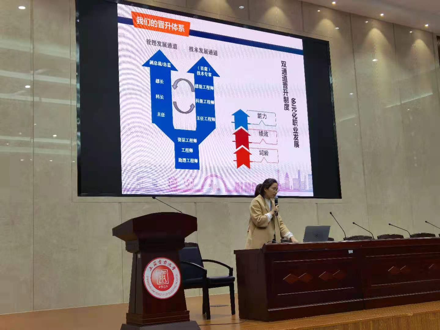 卫洁还为同学们详细介绍了此次春季招聘的岗位、公司对新员工的四维培养方案、员工的薪酬福利体系以及双通道晋升制度,并为2022届的同学们介绍了人才训练营的培养体系。宣讲结束后现场进行笔试考核和简历投递,随后在美加墨世界杯官方网站4楼对2021届毕业生进行了分组面试。