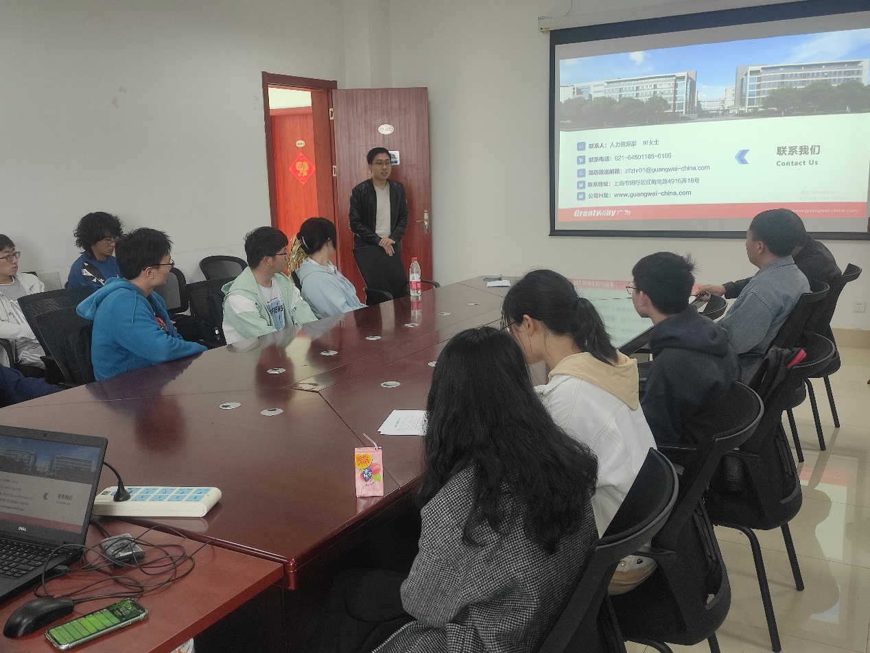 416日下午,上海广为电器集团美加墨世界杯官方网站专场宣讲招聘会在临港校区电信楼B402会议室成功举办,上海广为电器集团人力资源部经理田敏、技术部毕浩强和美加墨世界杯官方网站曾俊冬老师、毕业班辅导员任帼菲出席,美加墨世界杯官方网站20余名本科生参会。