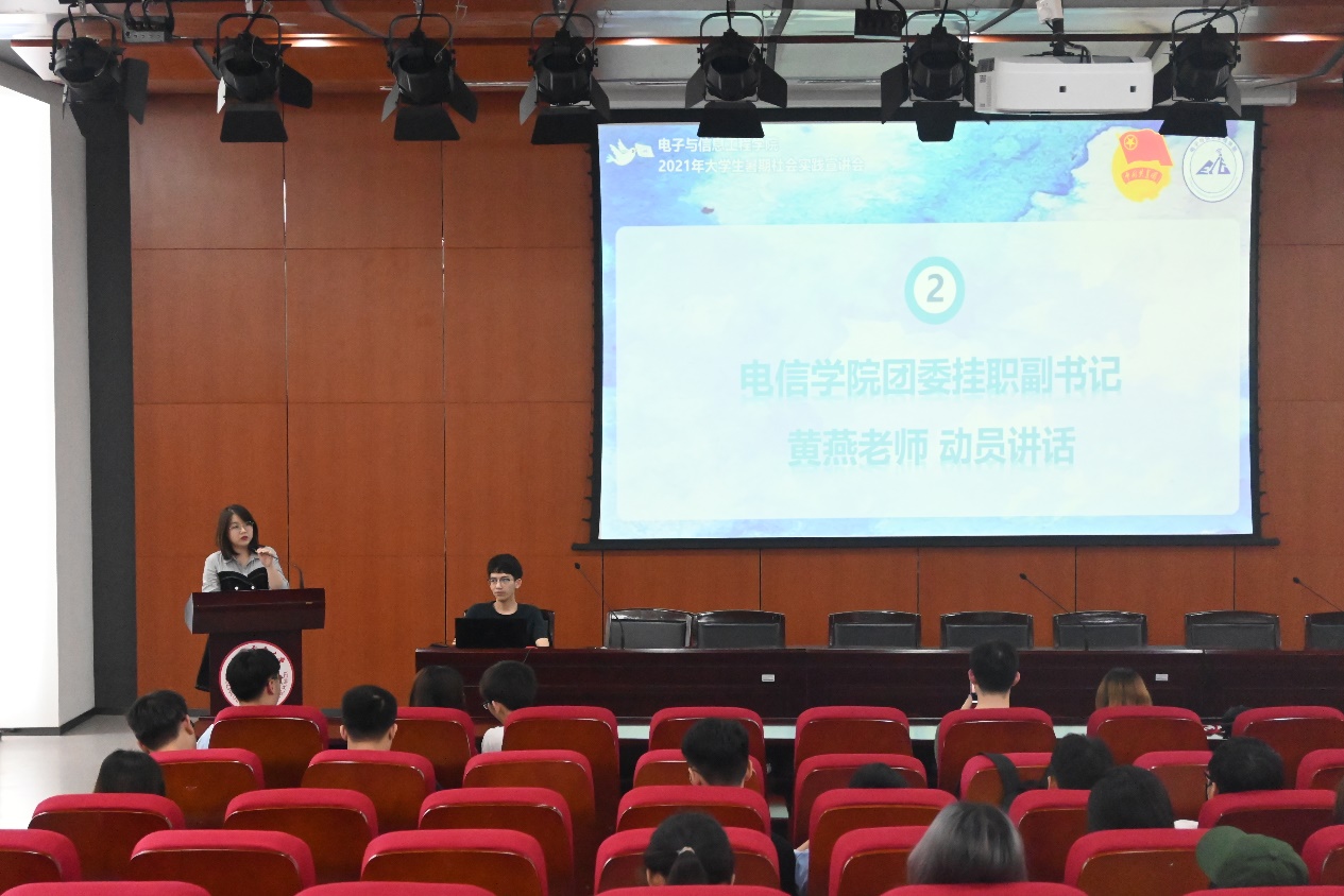 黄燕为同学们做了社会实践动员,她指出了参加暑期社会实践的意义,同时号召同学们积极报名参加,为学院实践队伍注入新鲜的血液。学院团委实践部部长顾雪珺对寒暑期社会实践整体情况进行了介绍,让同学们对社会实践有整体的认识,同时她也对有关同学们对社会实践了解程度的调研问卷结果进行了现场反馈,为同学们解答了调研报告中的疑惑。