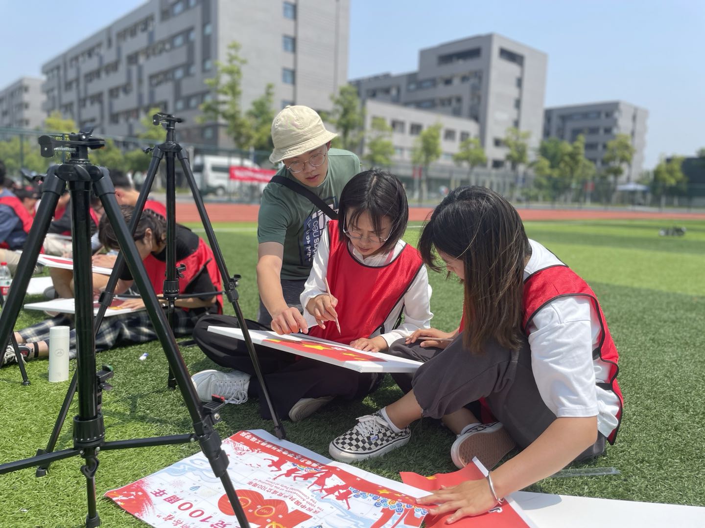 活动的第二项任务是完成一首献礼百年的诗歌创作,“风一更,雨一更,一百年风雨历程,思一生,念一声,想着你热血沸腾,如果不是那一面高举的红旗,怎会有今天壮丽锦绣的山河……”、“这一首赞歌,为你唱了100年,都没唱够……”金色的阳光洒在同学们的脸上,百名师生齐声朗诵自己创作的诗歌《百年赞歌》,更加坚定了心中光辉的信仰,引导自己前行的步伐,向中国共产党的百年风雨历程致敬,向中国共产党诞辰100周年致敬!