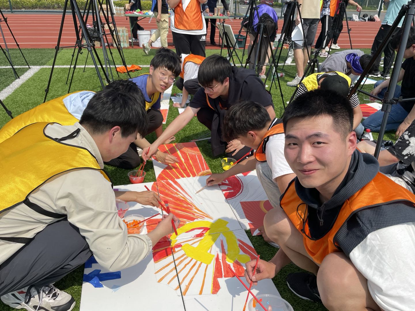 活动开始后,师生被分成十组,共同完成由100块画布组成的巨幅油画。每位成员领到了自己需要完成的部分,开始绘制时除了要考虑自己所要完成部分的排版布局,更要考虑自己画的位置、颜色、造型能否与自己前后左右同学的画完美的衔接起来。整个过程中,同学们需要积极的进行交流沟通,互帮互助,通力协作,将电信学子对党的祝福用心的一笔一划的描绘出来。