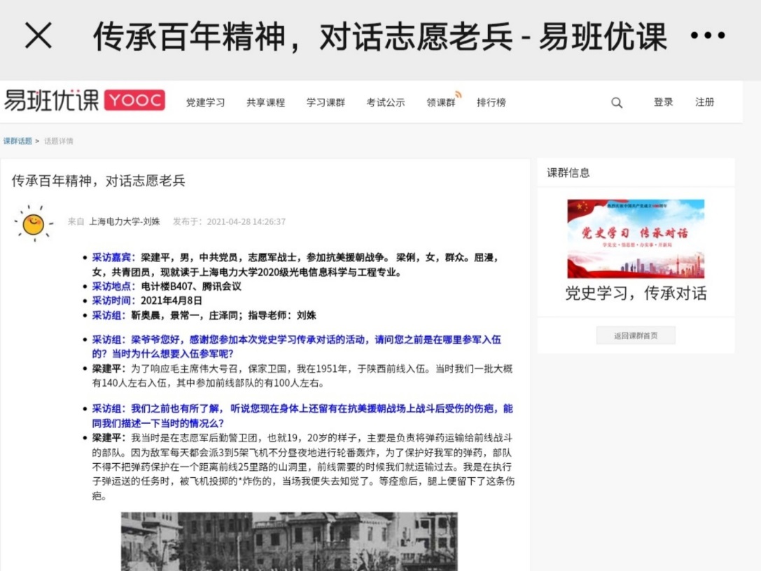 今年正值中国共产党百年华诞,为使广大师生深入学习党史,传承老党员的优秀品质。美加墨世界杯官方网站深入挖掘师生身边的优秀党员榜样资源,通过学生与“老干部、老战士、老专家、老教师、老模范”的“五老”传承对话采访,并通过学院微信公众号与易班平台,带领广大师生走进优秀老党员可歌可泣的故事中,感悟奋斗精神,增强责任担当,把党的百年奋斗延伸向未来。