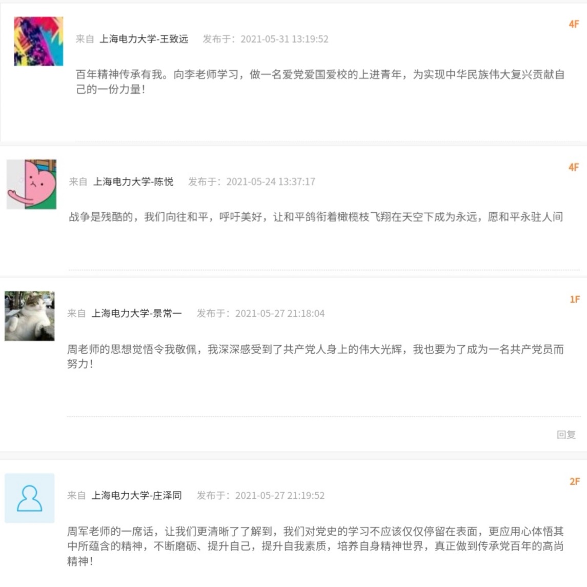 本次“党史学习,传承对话”活动,形式新颖,内容丰富,公众号与易班平台在发出后也收到了同学们的积极留言。同学们纷纷表示作为新时代的大学生,更应牢记革命先辈们用生命与热血书写下的百年党史,传承共产党员的优秀品质。下一步,美加墨世界杯官方网站将继续围绕党史学习教育开展系列活动,培养学生党性底蕴,以优异成绩迎接建党一百周年!