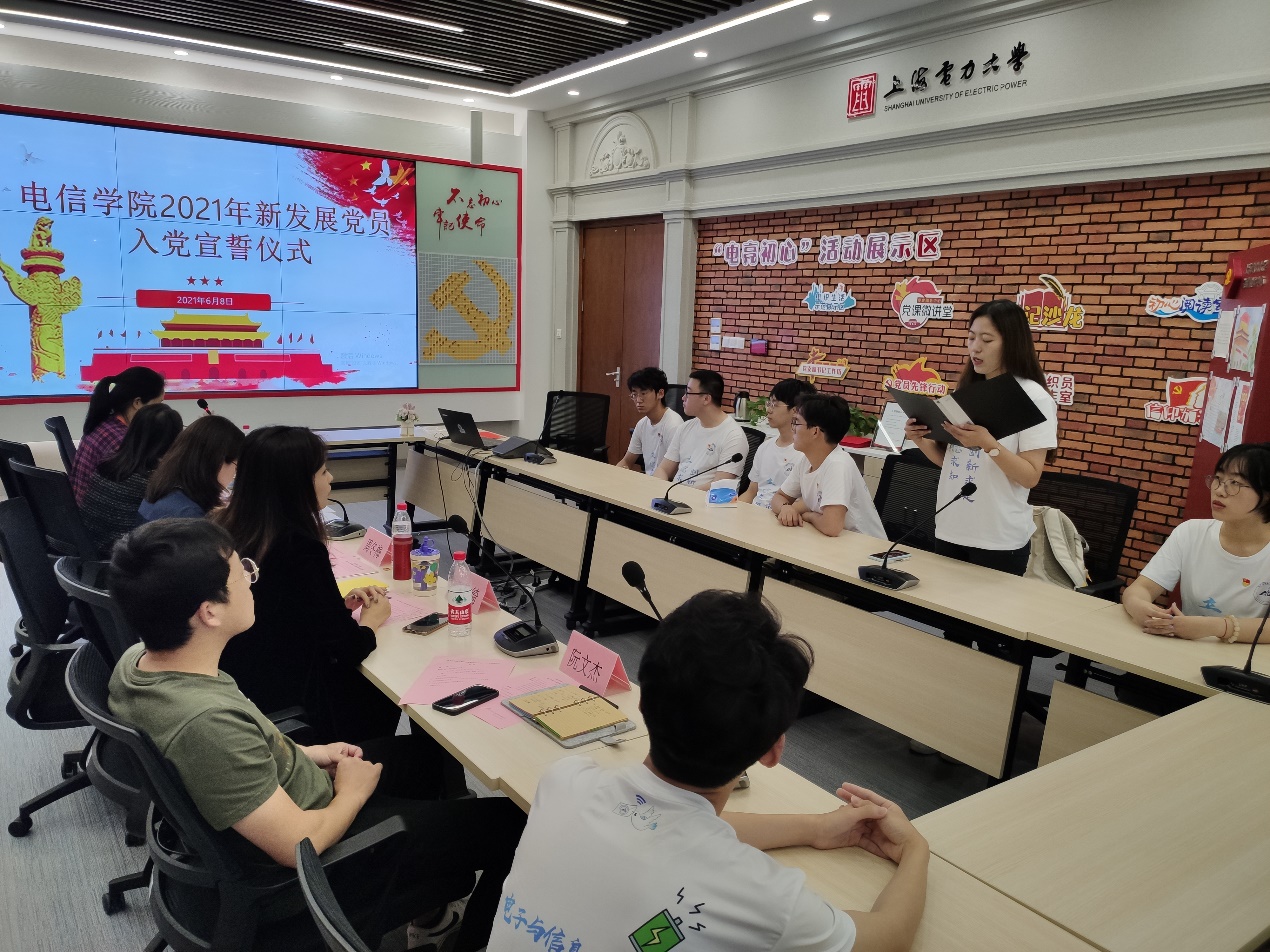为从严从实抓好党员教育管理,提高党员队伍建设质量,激励新党员坚定信念、胸怀祖国,担当有为。6月8日美加墨世界杯官方网站在学术楼党建服务中心102室举行新发展党员入党宣誓仪式。学院党委副书记周冬梅、组织员沈龙云、学生党支部书记阮文杰、王思绮、黄燕以及2021年上半年新发展党员出席了此次活动。会议由沈龙云主持。