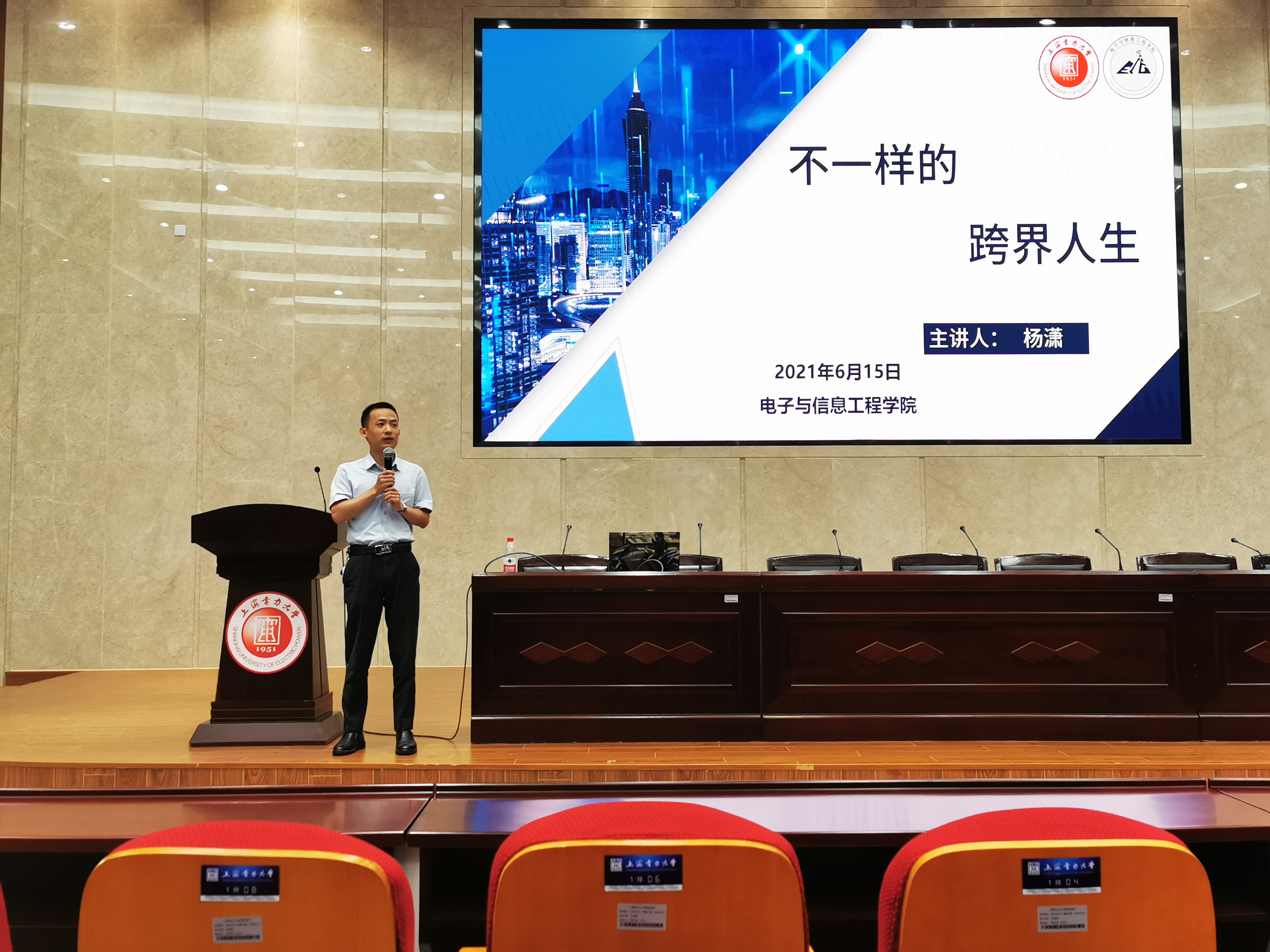 杨潇是美加墨世界杯官方网站2001级电子信息工程专业学长,讲座中他通过自己本硕博学习阶段不同专业的选择、考取的各类资质证书、教授的不同类别课程、从事的各项工作等几个方面,讲述了自己丰富多彩的跨界经历,结合跨界过程中的趣事和感悟,分享了跨界带给自己的收获:提高了学习知识的能力,开阔看待问题的思路,拓宽了交际圈,增强了自信心以及可供选择的道路等等。