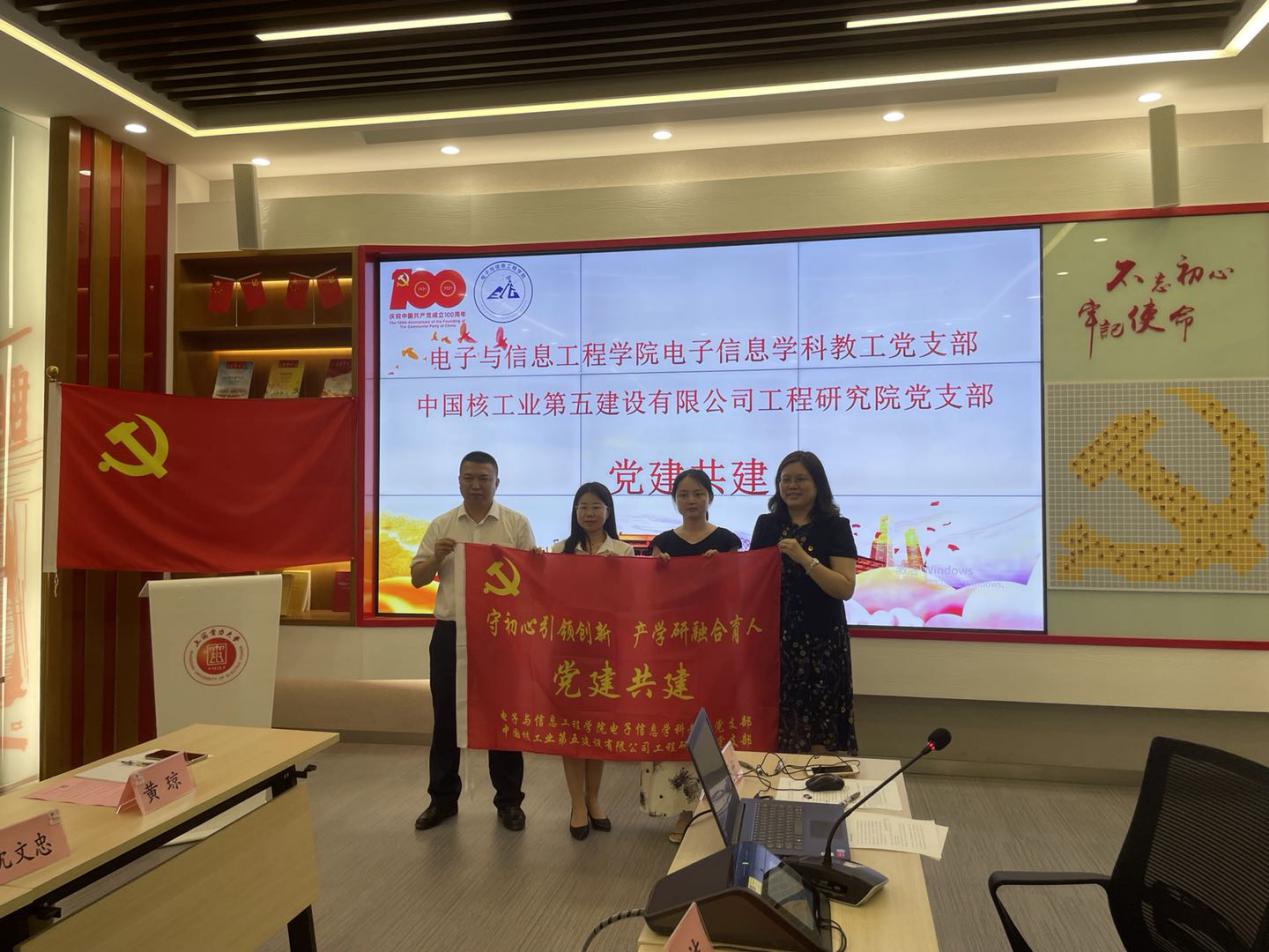 为迎接中国共产党成立100周年,进一步推进校企结对共建,实现优势互补,资源共享,互利共赢,共同提高科研育人能力。628日,美加墨世界杯官方网站电子信息学科教工党支部与中国核工业第五建设有限公司工程研究院党支部联合开展“守初心引领创新,产学研融合育人”主题党日活动。校党建服务中心/党建督查室特邀党建督查员梁磊,继续教育学院(国际教育学院)党总支副院长李平,电子信息工程学院党委书记何西培,中国核工业第五建设有限公司工程研究院党支部书记、院长程定富等出席活动,全校各二级党组织党员代表参加观摩。