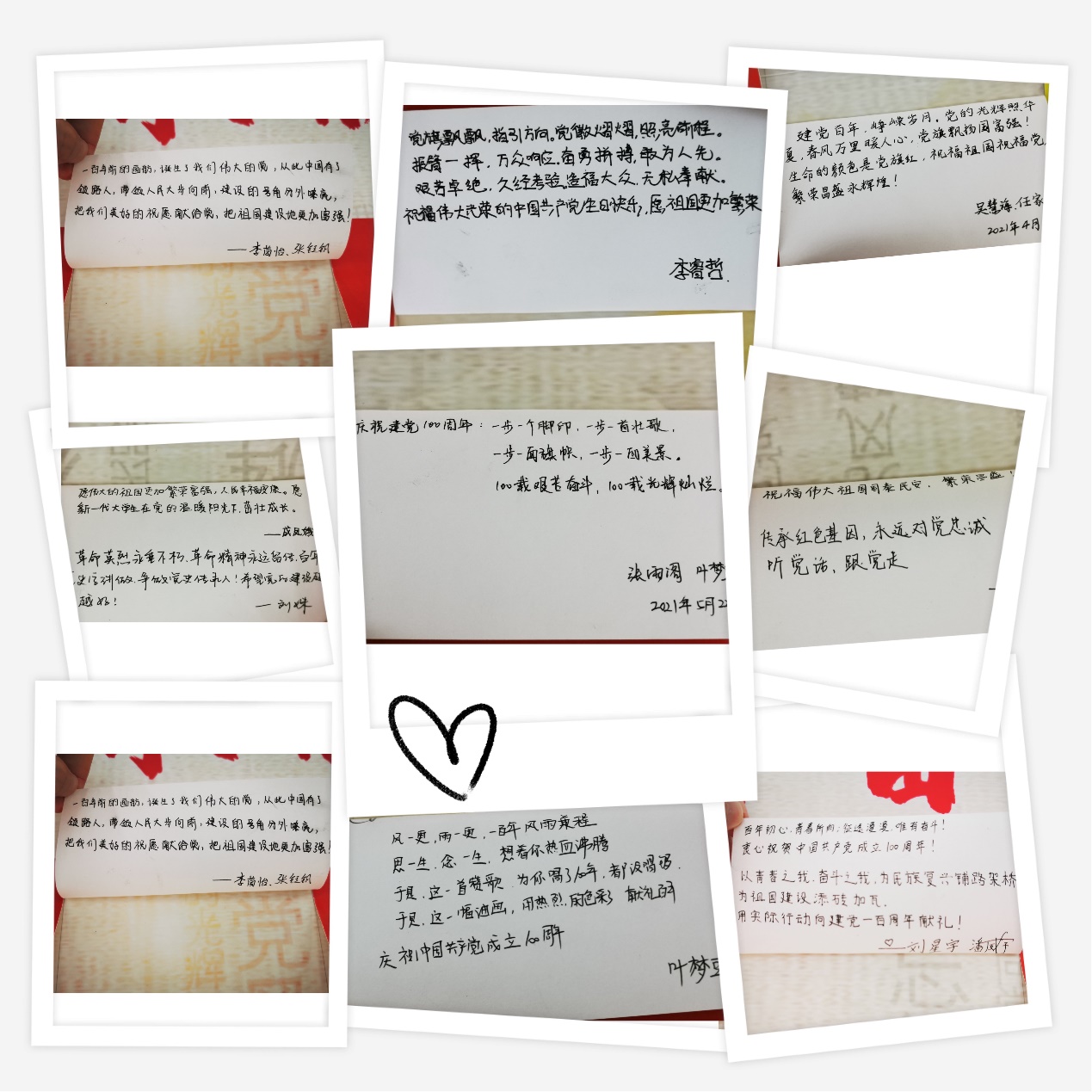 100天的时间里,学院4个教工党支部和7个学生党支部的百余党员每天接力翻倒计时牌,深情书写对党的祝福,在一笔一画中彰显初心使命,将对党的忠诚与热爱之情融入字里行间,最终由100张祝福卡片汇聚成一面鲜红的党旗,向党的百岁生日献礼。活动中党员们纷纷抒发了自己的初心和祝福,许下不断前行奋进的誓言。