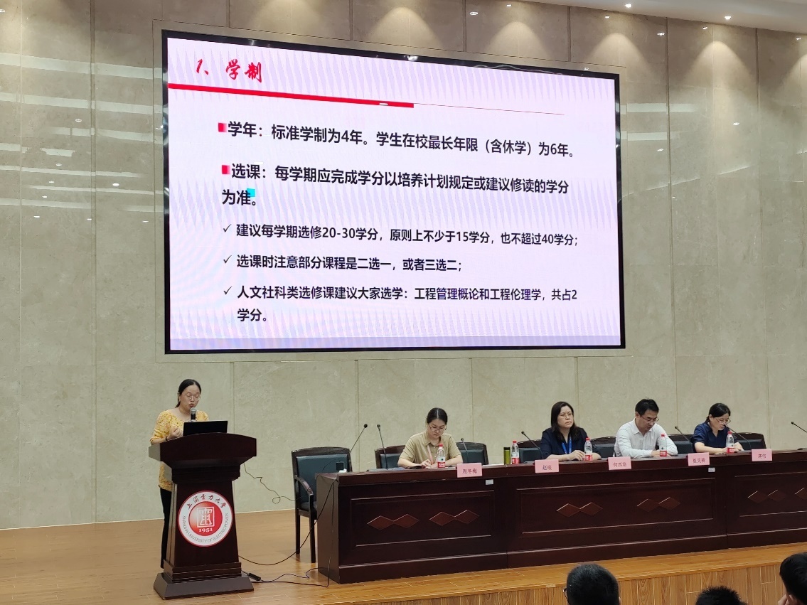 赵琰向新生们介绍了大学的学籍管理。她分别从大学学制、考核方式、成绩管理、考勤管理、转专业、违纪违规等九大方面详细地阐述了大学四年的学习内容,使新生更加清晰地了解今后的学习方式和内容,并为大学期间的自身发展做好构思与规划。
