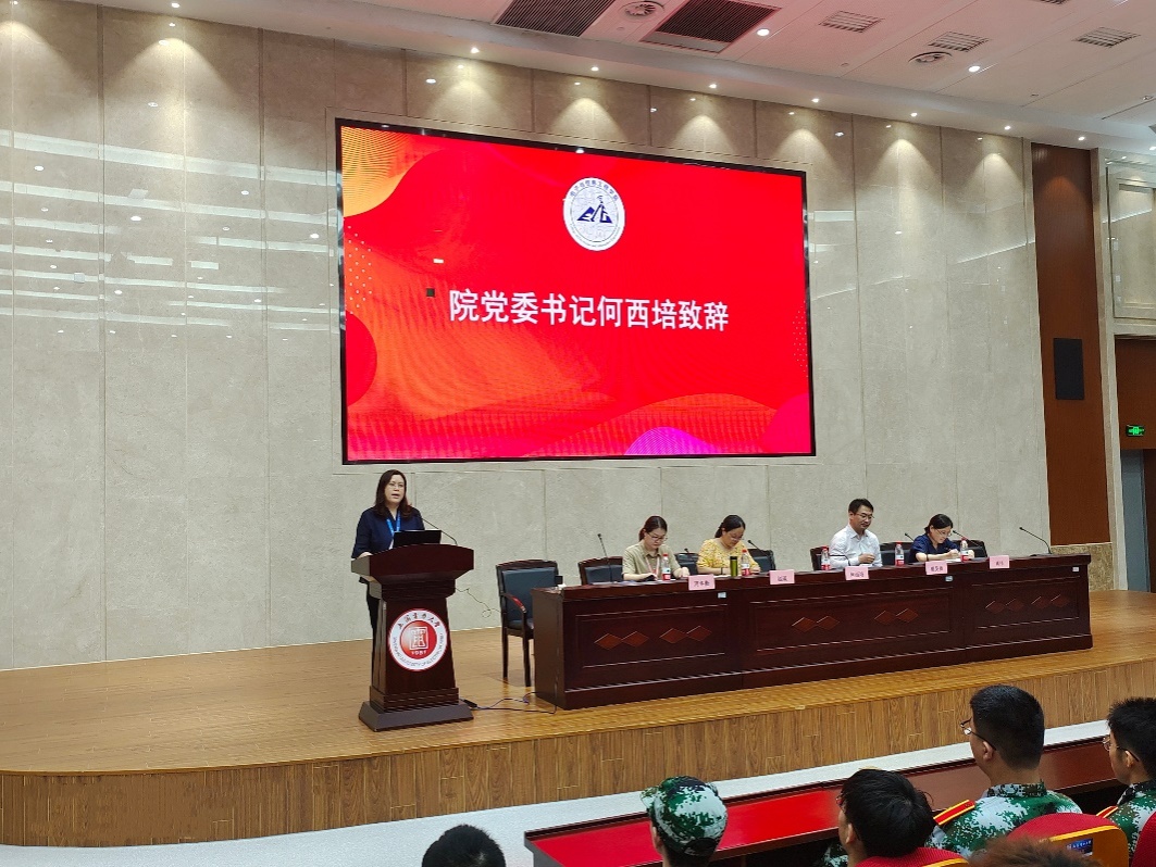 周冬梅对学生管理工作进行了详细介绍,通过“现在你想要什么、现在你能做什么、未来你想成为什么”三个问题引发新生的思考并给出建议,对如何读大学和大学生活常见问题进行了说明和引导,同时也向新生们进行了入学安全教育,提醒新生提高警惕,防范电信诈骗,并要求全体新生及时下载国家反诈中心APP