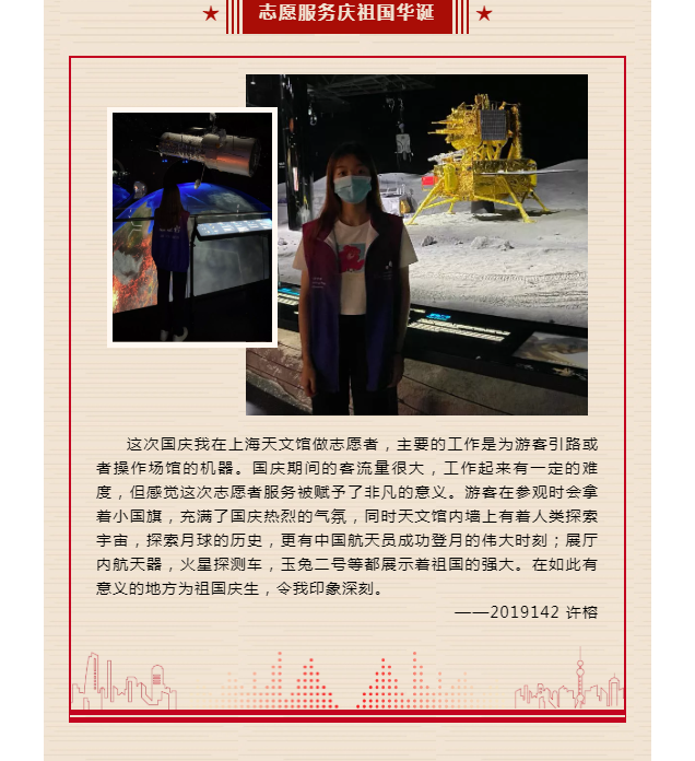 金秋十月,喜迎国庆;盛世华诞,举国同庆。中华人民共和国成立72周年之际,学院还举办了“我为祖国庆生”作品征集活动,与全院师生共同祝祖国母亲生日快乐!同学们踊跃参与,通过“志愿服务庆祖国华诞、书法作品庆祖国华诞、旭日东升庆祖国华诞”等系列作品的形式进行开展,充分展现了电信学子对祖国的敬爱之情。青春和祖国一起闪光,光荣与梦想共同创造,值此祖国72周年华诞之际,把最美好的祝福送给祖国,希望祖国的明天越来越好!