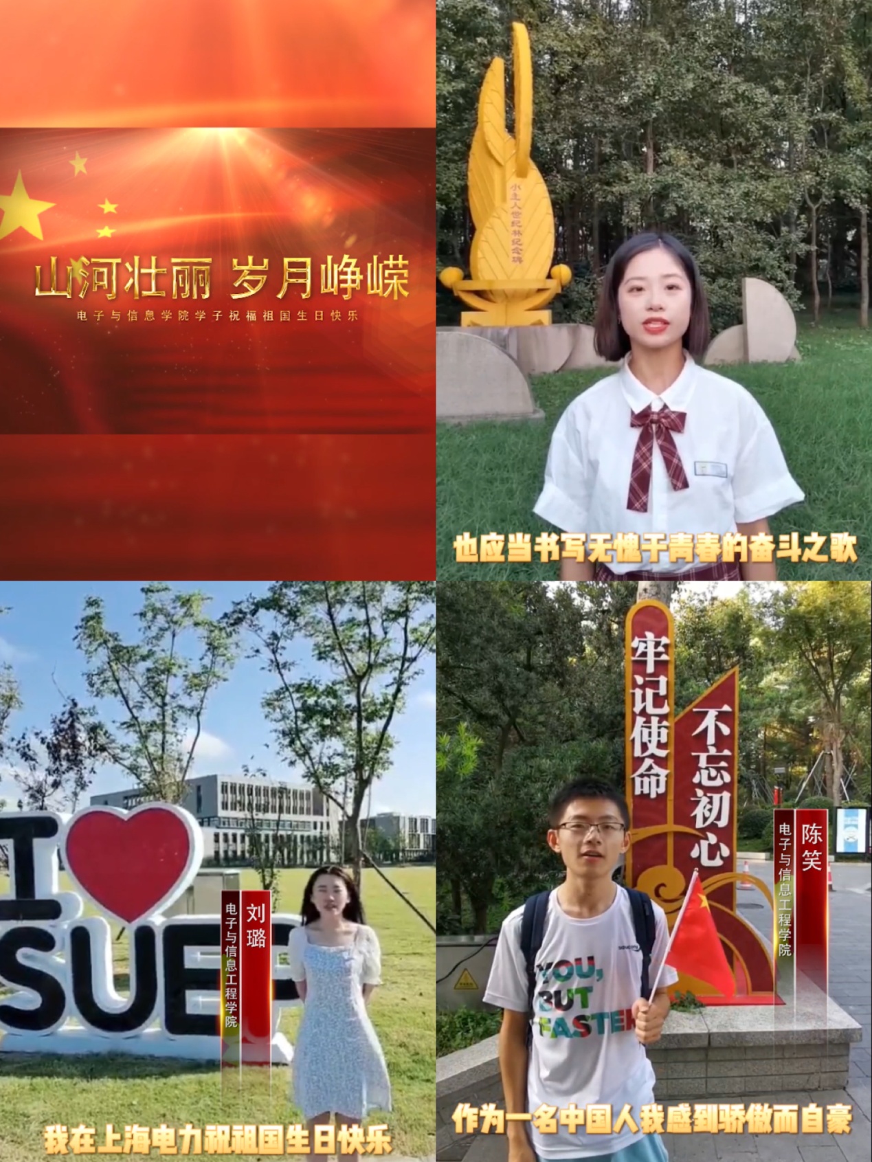 为庆祝新中国成立72周年,迎接世界杯官网70周年校庆,抒发电信学子爱党爱国爱校情怀,展示蓬勃向上的精神风貌,十一期间学院组织“深情向祖国告白,献礼上电70周年”主题短视频征集活动,同学们向祖国72周年华诞和上电70周年华诞纷纷送上了自己的祝福,祝福祖国繁荣昌盛,祝福学校桃李天下,通过活动的参与,展现了同学们感恩母校,热爱祖国的真情实感。