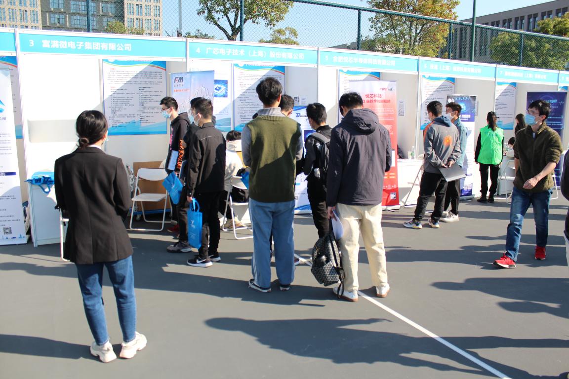 11月12日下午,美加墨世界杯官方网站2022届毕业生秋季专场招聘会在临港校区篮球场举办,本次招聘会共邀请到中芯国际集成电路制造有限公司、上海邮电设计咨询研究院、上海积塔半导体有限公司、富满微电子集团有限公司、康希通信科技有限公司等25家企业,提供电子信息领域的200多个工作岗位,此次招聘会共吸引100余名毕业生参加。