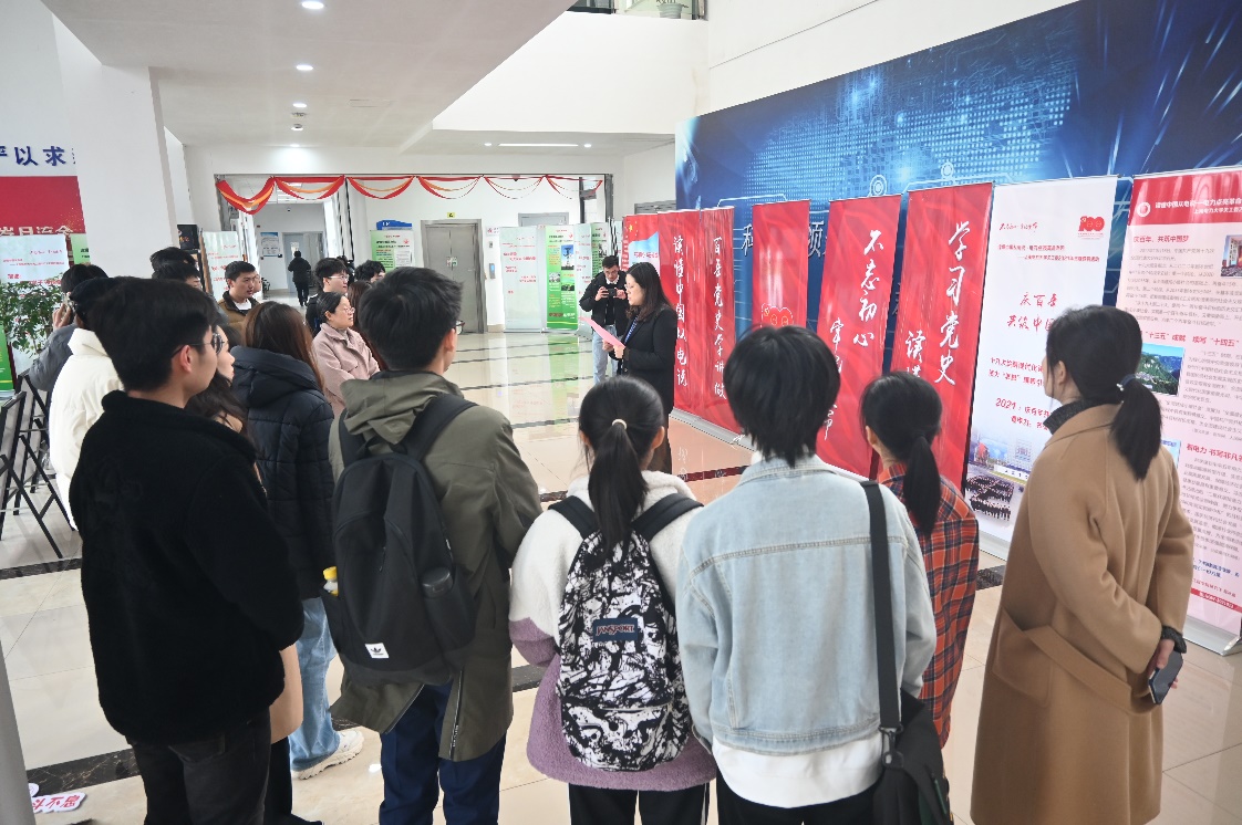 12月8日,美加墨世界杯官方网站结合教师政治理论学习内容,组织学院教师集中对“读懂中国从电说”系列手账卡展板进行参观学习,美加墨世界杯官方网站党委书记何西培、院长崔昊杨、党委副书记周冬梅、副院长赵琰,以及学院教师和学生党员代表参加了本次参观学习。