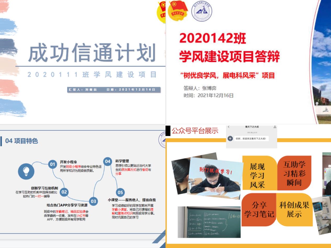 会上,共有17个班级学风建设项目汇报人围绕各自主题,从项目意义、具体举措、取得成效及未来展望等方面展示了各班级学风建设项目的立项申报情况。各班级旨在通过开展“优秀笔记评选”、“学习打卡”、“小老师课堂”、“英语角”等一系列特色鲜明的主题活动,通过学习帮扶、考勤监督、科创活动等形式多样的学风互帮互助小组,充分调动班级同学的学习积极性提高班级成绩