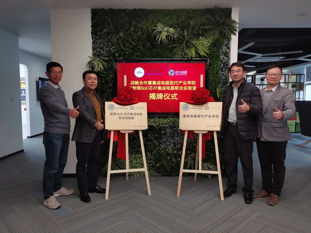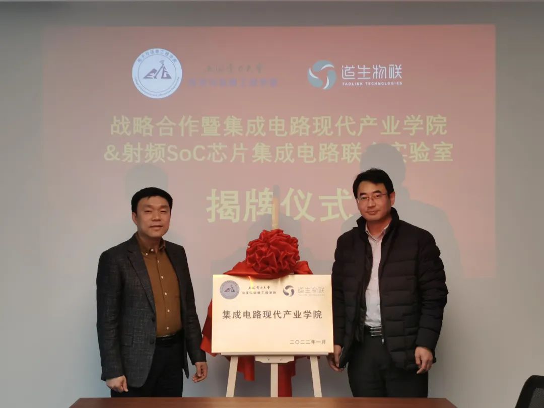 2022125日下午,美加墨世界杯官方网站美加墨世界杯官方网站与上海道生物联技术有限公司举行“集成电路现代产业学院”和“射频SoC芯片集成电路联合实验室”揭牌仪式。