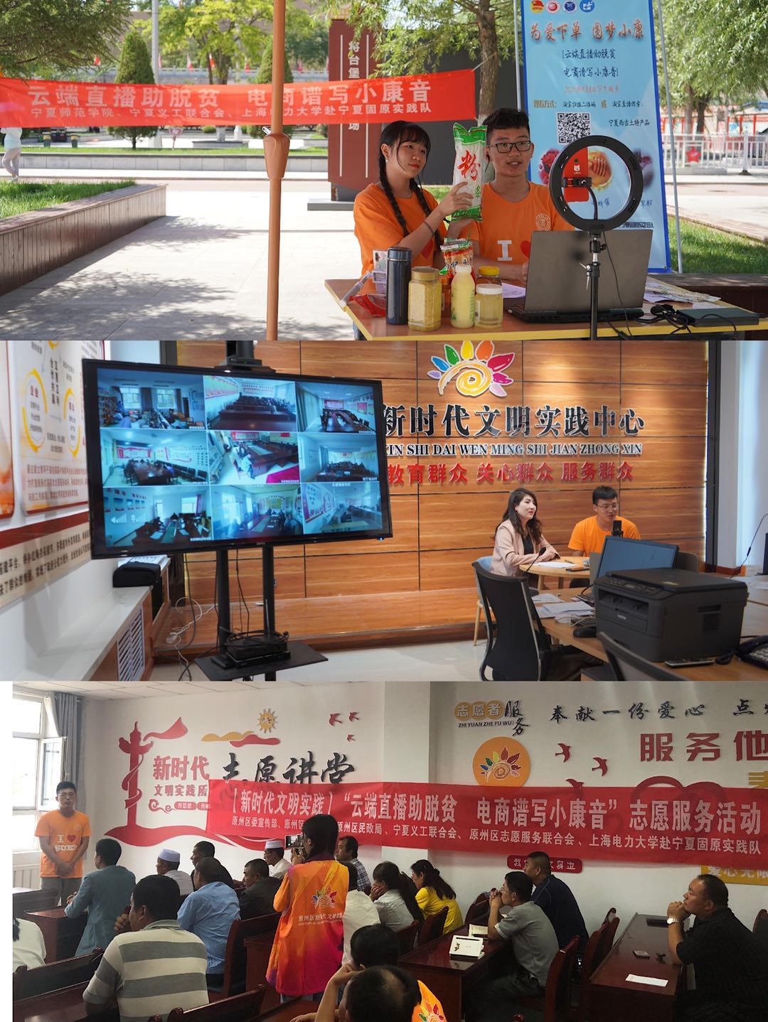 2020年,为进一步解决因疫情影响的产品滞销和产品宣传覆盖面不足的问题,实践队在固原市原州区委宣传部、文明办、民政局、团区委、志愿服务联合会、新时代文明实践中心以及宁夏师范学院团委、宁夏义工联合会的大力支持下,因地制宜、发挥优势,由队员化身主播进行直播带货。4场直播带货为当地老乡推广了土蜂蜜、红军粉、枸杞等土特产以及精美的残疾人手工艺品,在直播的同时通过云视讯平台,对原州区167个乡镇、街道和村部的老乡进行培训,累计超过19000人在线观看,完成交易127单,共计交易额近10000元,产品远销上海、江苏、安徽、河南、广东、山东、吉林、辽宁、内蒙古等地,实践队被学习强国平台、青年报、宁夏日报、固原电视台、固原日报、固原新闻等媒体多次报道。