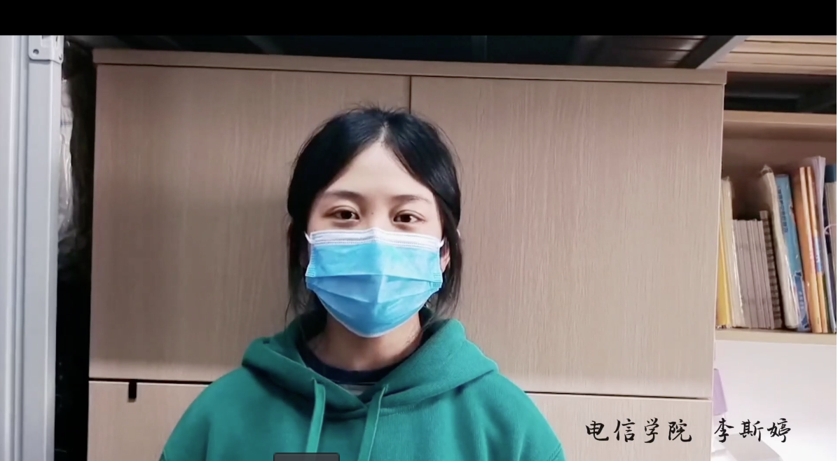 2019级电子信息工程专业刘一鸣说:“科学防疫,我们一马当先。在疫情防控班会的学习中,我感受到了新冠奥密克戎病毒的来势汹汹,也更震撼于援沪医疗队及防疫志愿者在疫情战场上“逆行”的勇气和伟大的奉献精神。我认为作为新时代的大学生,积极响应落实学校的各项防疫工作,是对疫情防控最基本的贡献也是最大的贡献。在日常注意防疫的同时也要积极投身于志愿者的队伍中,为同学为学校做真正有意义的服务。疫情当前,我们携手守“沪”!”