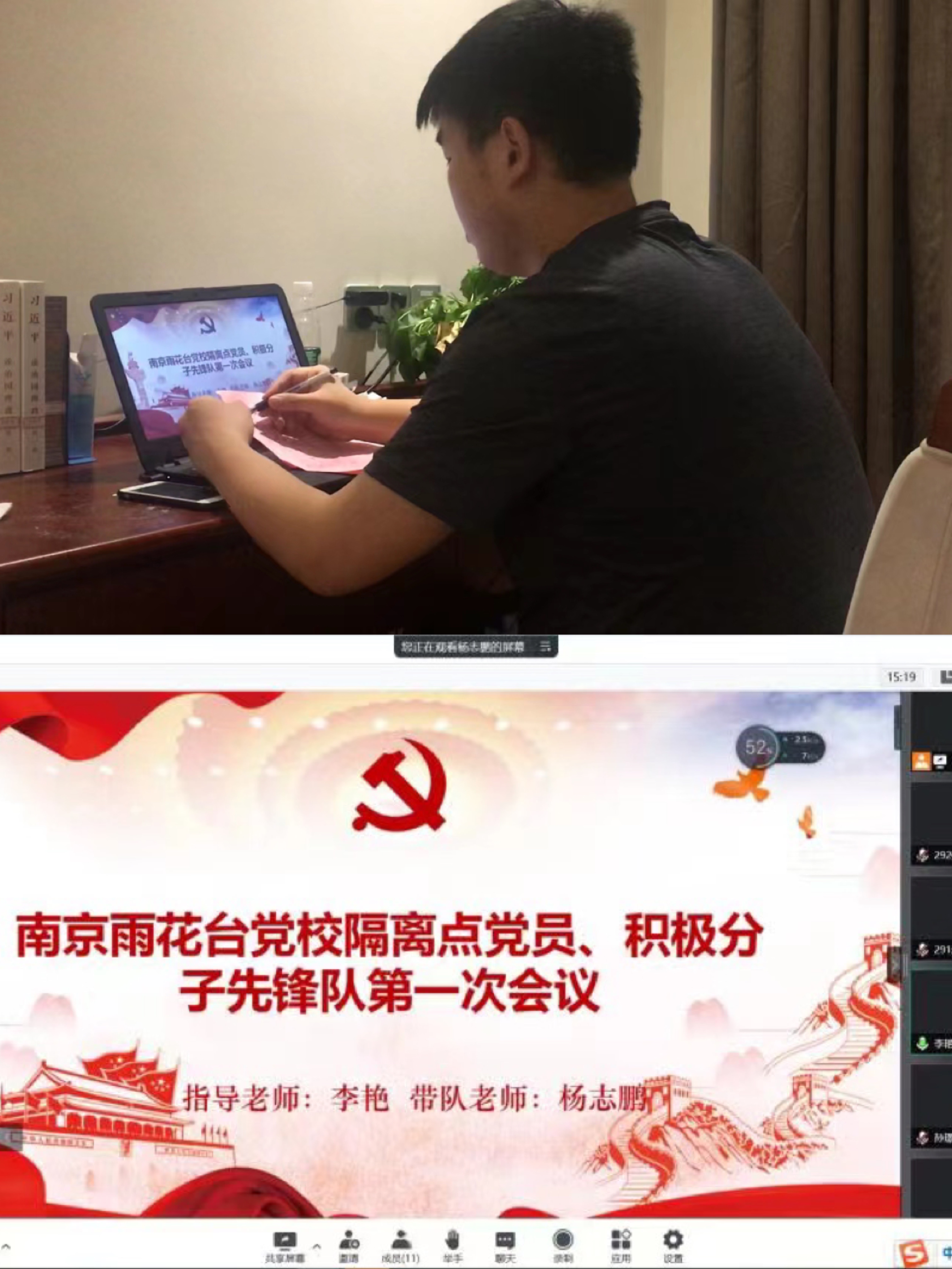 在一周的隔离期间,杨志鹏将所带同学分成6个小组,做好每日核酸采样、抗原检测的报备统计工作,并及时回答、反馈、解决同学们的各类问题,成为大家信任的“学长老师”。同时在校党委的指导下立即成立了隔离点党员、积极分子先锋队,实行点对点负责管理制,把关心关怀送到每一位同学的心里,为同学们做好服务保障工作。他还组织同学们开展了云游雨花台烈士陵园等活动,既丰富了课余生活,也为隔离生活注入了一抹积极向上的色彩。