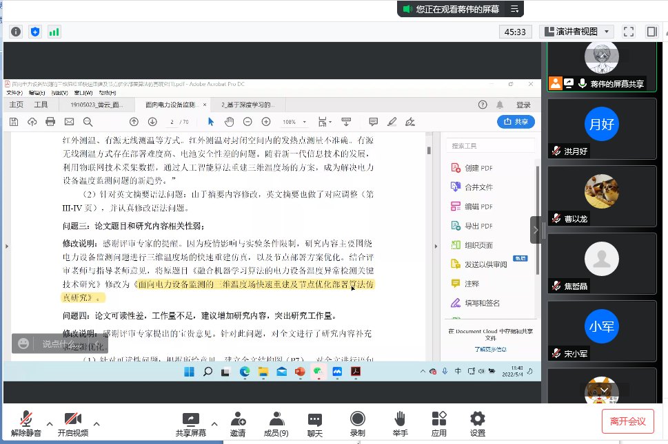 最后,导师们表示会根据会上提出的问题和修改意见,继续指导研究生修改论文,在严格把关论文质量的同时关心学生的身心健康。