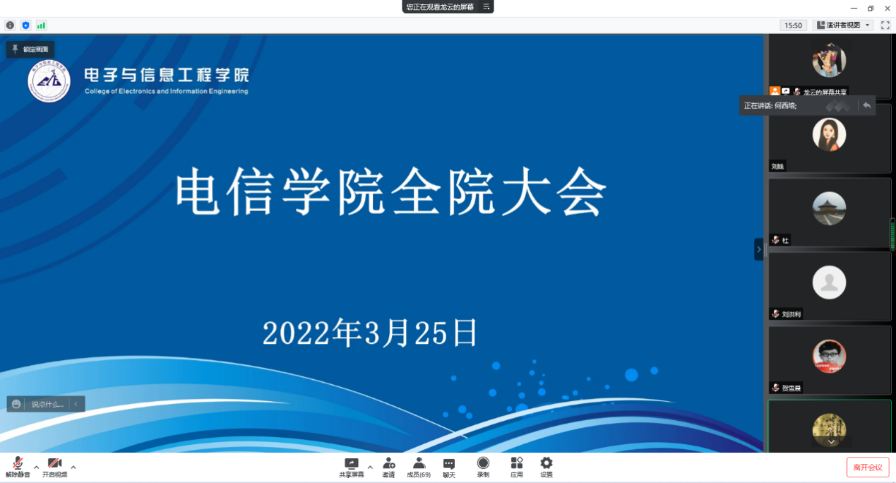 蒋伟对学院今年的国家自然科学基金申报、研究生复试、研究生论文评审等工作进行了总结和汇报,对准封闭阶段研究生课题指导工作提出了要求,对实验室安全管理进行了布置。
