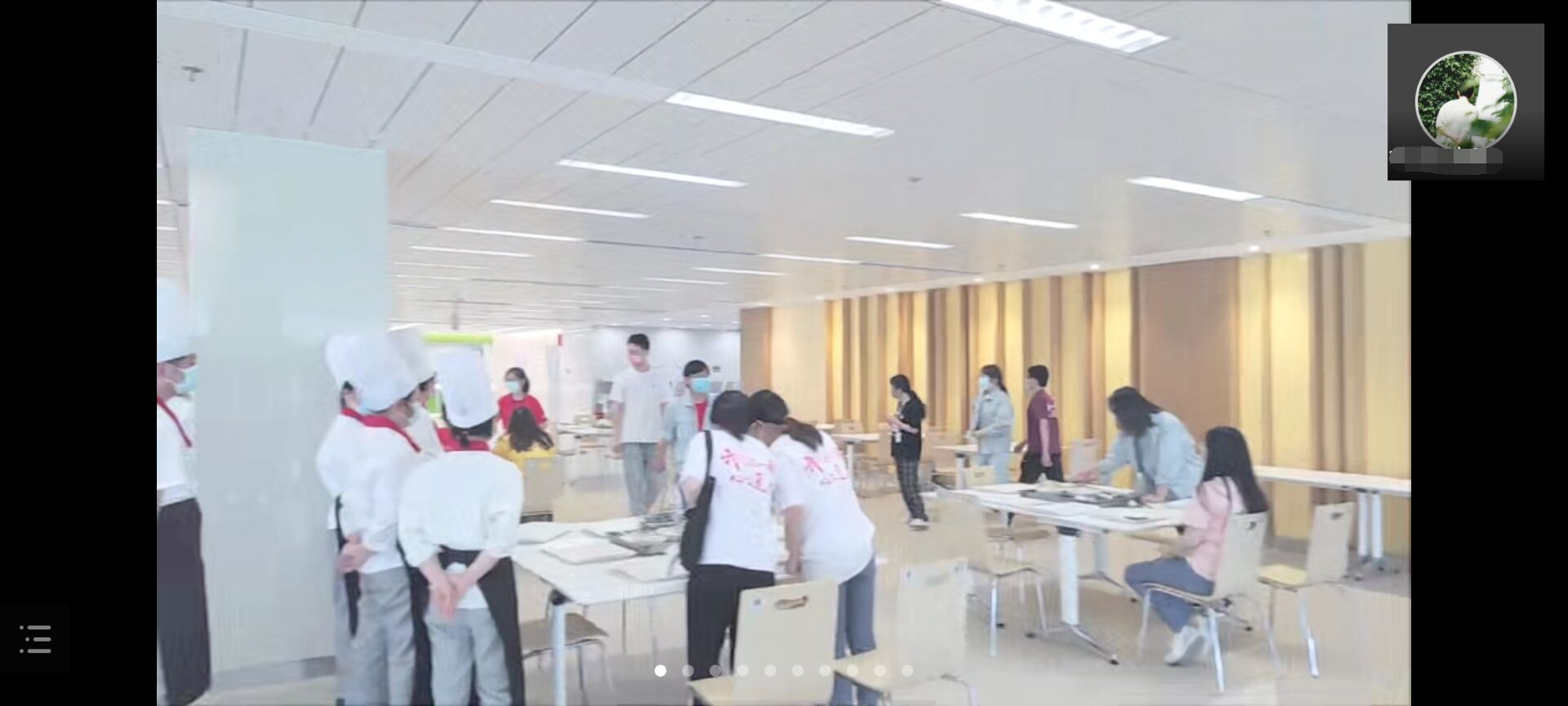 两位华力一线HR同事带领师生一同云游华力,一睹华力“晶”彩,跟着镜头观望远处的12英寸生产线、工程楼、宿舍楼和附近的轨道交通。走进研发楼大厅,HR王昇介绍了集成电路芯片的发展历程,展示未切片的的硅晶棒、沙盘模型、荣誉榜照片墙等。正值端午节,员工们正在食堂筹备包粽子活动。除此之外,还一路观望了中央商务区、生活园区、理发屋、健身房等。此次云游经历让同学们感受到上海华力丰富的企业文化与无处不在的人工智能。
