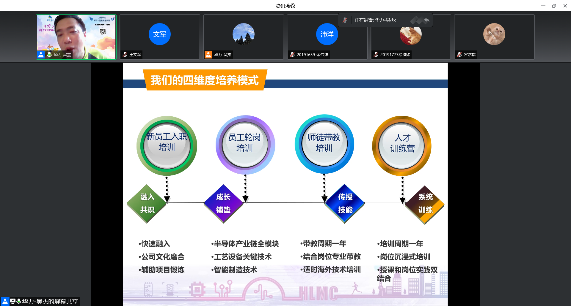 6月3日下午,上海华力微电子有限公司(以下简称“上海华力”)2023届定向培养班——美加墨世界杯官方网站专场校招宣讲会于线上举办。上海华力人力资源部主管吴杰、干刻设备科副科长冯翔、美加墨世界杯官方网站党委副书记周冬梅、就业负责人黄燕、辅导员王思绮以及2023届近100名本科生参会。