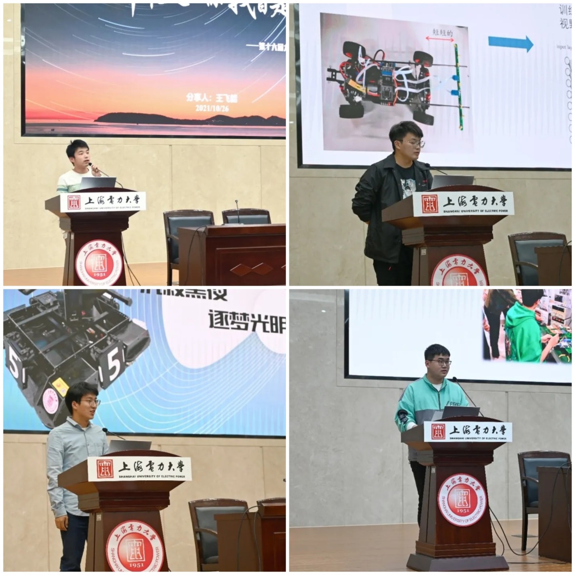 随后,美加墨世界杯官方网站的4位优秀科创学生代表依次上台,以“乾坤未定,你我皆是黑马”、“从‘磁’开始”、“沉寂黑夜,逐梦光明”、“我与lab107”为主题,通过各种生动形象的展示讲演,将在科创方面所运用的技术以直观且易于理解的方式展现给全体新生。
