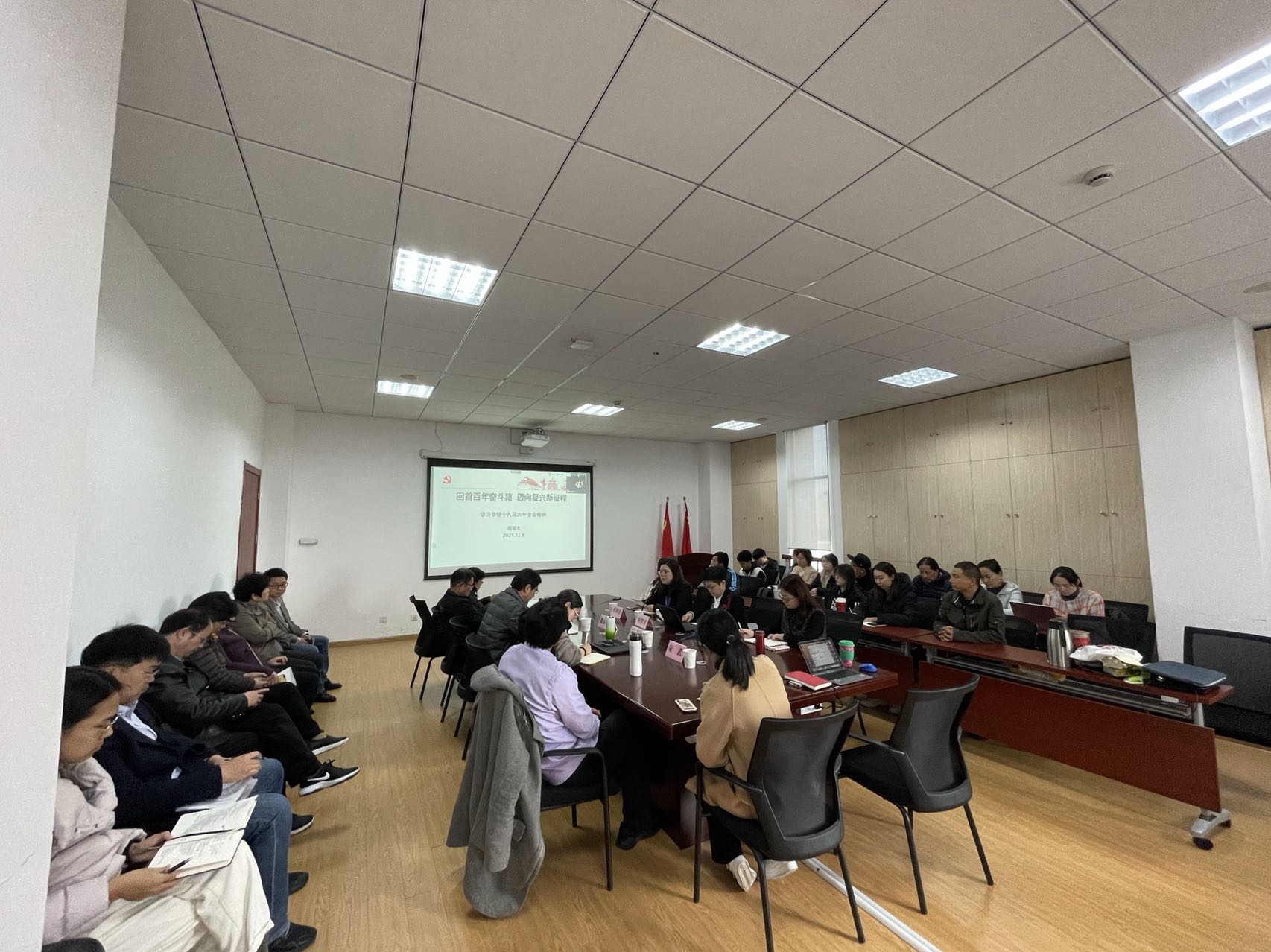 报告后,中心组成员对学习感受进行交流分享。大家都认为此次二级中心组学习的举行,恰逢党的十九届六中全会召开后的一个月,作为高校师生,要在日常的教学、科研、学习中,积极践行党的十九届六中全会精神,把立德树人作为根本任务,把服务国家作为最高追求,把学科建设作为发展根据,把发展党的建设作为根本保障。