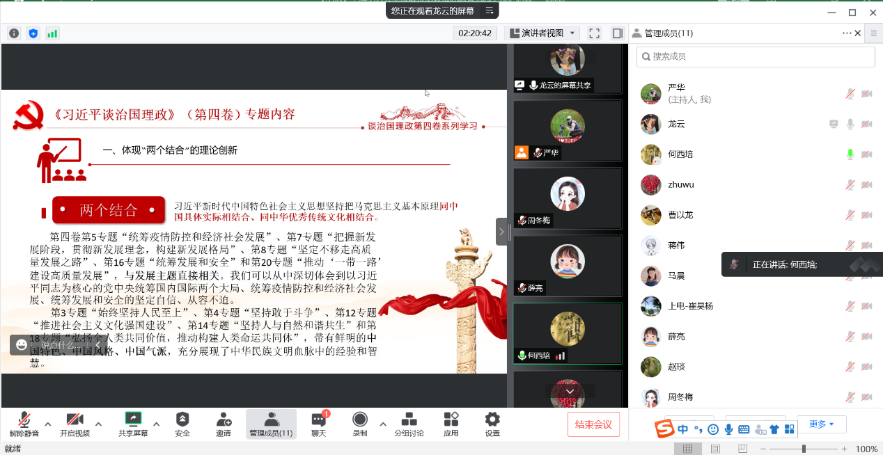 她强调要切实增强用习近平新时代中国特色社会主义思想武装头脑、指导实践、推动工作的政治自觉、思想自觉和行动自觉,坚定不移沿着习近平总书记指引的方向前进。要求学院党政班子先学一步,以上率下示范引领,在学习中凝聚奋进力量,不断提高学院师生理论素养和思想觉悟,切实把学习成效转化为奋进新征程、建功新时代的工作举措,以实际行动迎接党的二十大胜利召开。