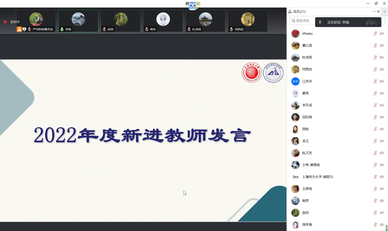 学院院长崔昊杨谈到,江友华老师获得上海市“四有”好教师的荣誉,对学院上下起到极大的鼓舞和激励作用,江老师是我们身边优秀教师的一员,我们每一位老师都要争做“四有”好教师。同时希望新进教师要学习江友华老师无私奉献的精神,尽快完成角色转换,不断加强思想政治素质和师德师风建设,增强红线意识和底线思维,提高政治站位,全面发展,为学校建设高水平地方大学做出贡献。