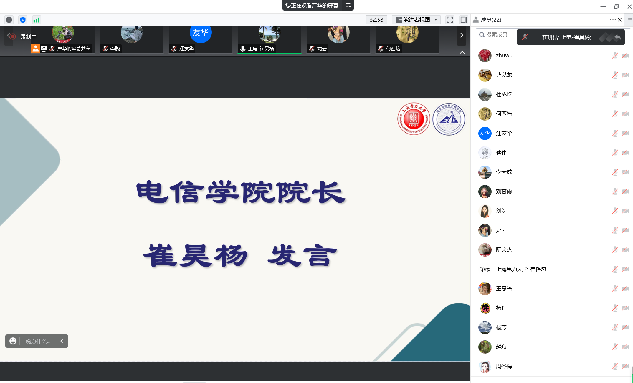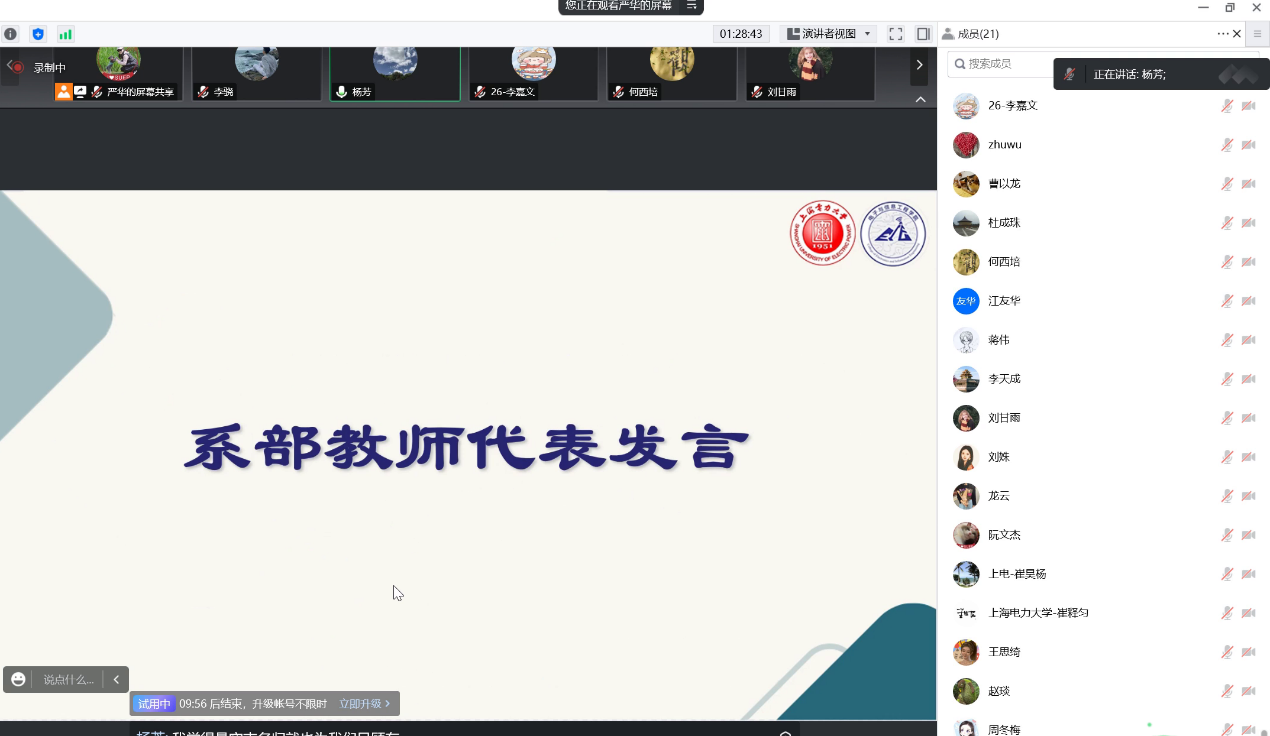 学院副院长蒋伟结合江老师在工作中的点点滴滴谈了自己的感受,希望大家向江老师学习,在科研方面要脚踏实地,勇于创新。并提出几点建议:科研工作要面向国家和上海的需要,立足电力行业的发展需求,开展原创性探索性的研究,要注重将自身研究方向和学校特色研究方向相结合,希望新进教师能够合理制定规划,做好目标,努力钻研,取得丰硕成果。