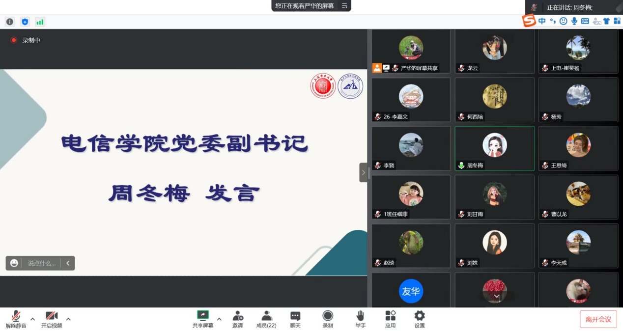 学院党委副书记周冬梅分享了学习江友华老师事迹的感受,并提出立德树人是教育的根本任务,开展学生思想政治教育工作要学习江老师言传身教,身体力行,润物细无声的教育理念和方式,不断提高自身的道德修养,踏实做事,低调做人,以模范行为影响和带动学生,为无上光荣的教育事业而努力奋斗。