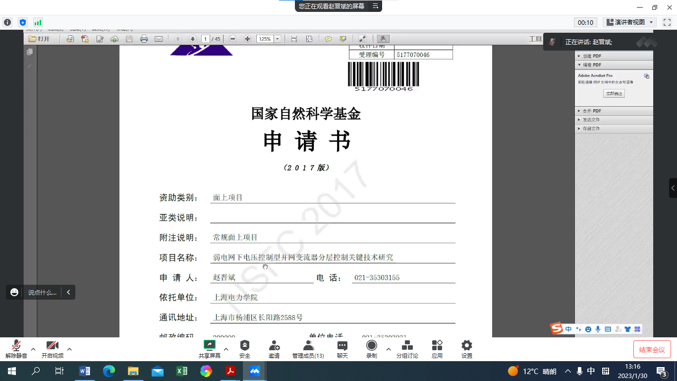 2023年1月30日下午13:00,世界杯官网主办的“2023年国家自然科学基金申报系列活动”第7期成功举办。本次活动邀请了世界杯官网电气工程学院的赵晋斌教授作国家自然科学基金申报讲座。讲座由崔昊杨院长主持,学院10余名教师参加了会议。