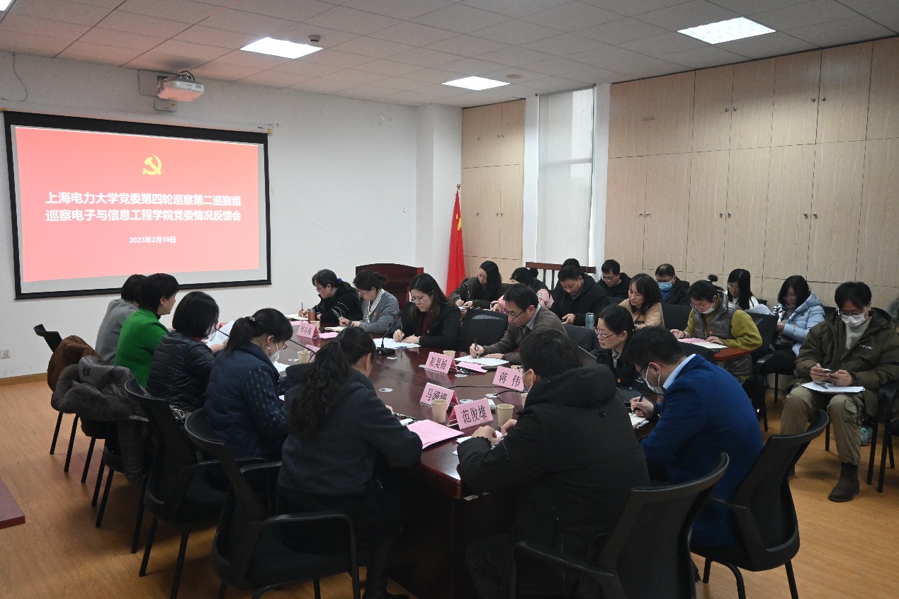 2月10日下午,校党委第四轮巡察第二巡察组巡察美加墨世界杯官方网站党委工作反馈会在临港校区电计楼B402会议室召开。校党委巡察办副主任潘耀芳,校纪委审查调查室主任王云欢、校党委专职组织员马姗姗、校党委巡察办巡察专员施锋锋、校党委第四轮巡察第二巡察组组长毛静涛、副组长余静、联络员范俊雄出席,美加墨世界杯官方网站党政领导班子成员、党委委员、党支部书记、党政办公室主任、专职组织员、分工会主席、专业负责人、分团委书记、民主党派代表、教师代表等20余人参加会议。会议由美加墨世界杯官方网站党委书记何西培主持。