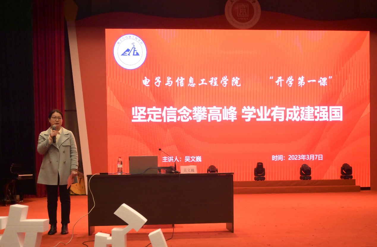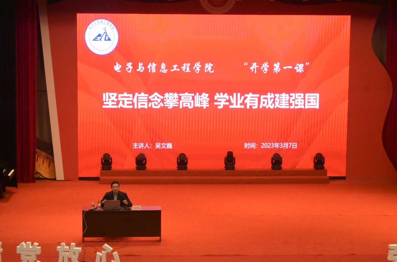为贯彻落实党的二十大精神,落实立德树人根本任务,教育引导学生坚定理想信念,练就过硬本领,矢志艰苦奋斗,以新姿态、新面貌迎接新学期的开始,3月7日下午,美加墨世界杯官方网站邀请全国“五一”劳动奖章获得者、国务院特殊津贴专家、上海市劳动模范、中国电信上海公司首席技师和一级电信服务专家吴文巍,在大学生活动中心演艺厅作题为“坚定信念攀高峰,学业有成建强国”的“开学第一课”专题讲座。美加墨世界杯官方网站党委副书记周冬梅,辅导员李天成、刘甘雨出席,学院本科生、研究生共同参加。