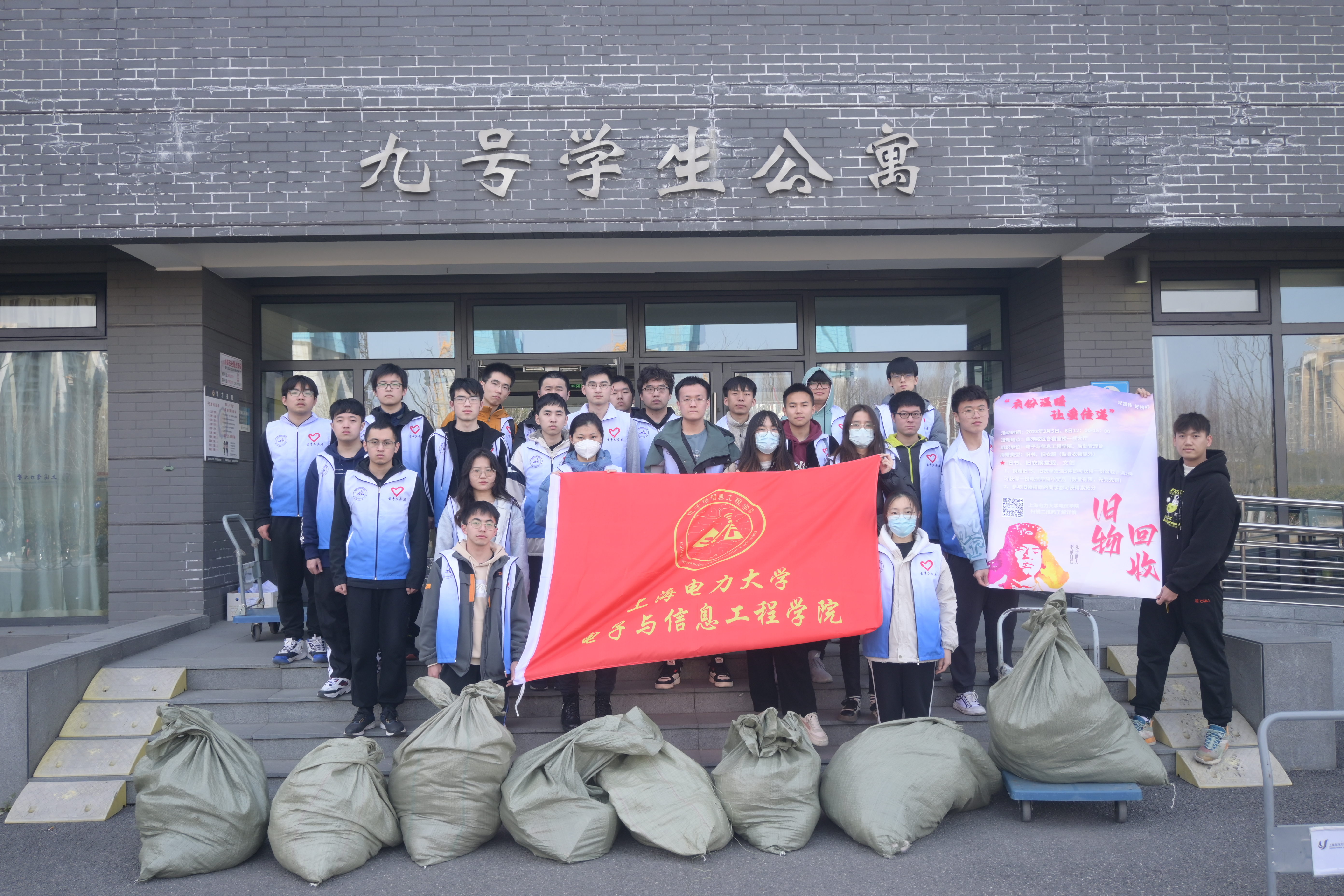 此次旧物回收活动共设置9个点位,分别是一至九号学生公寓一楼大厅。