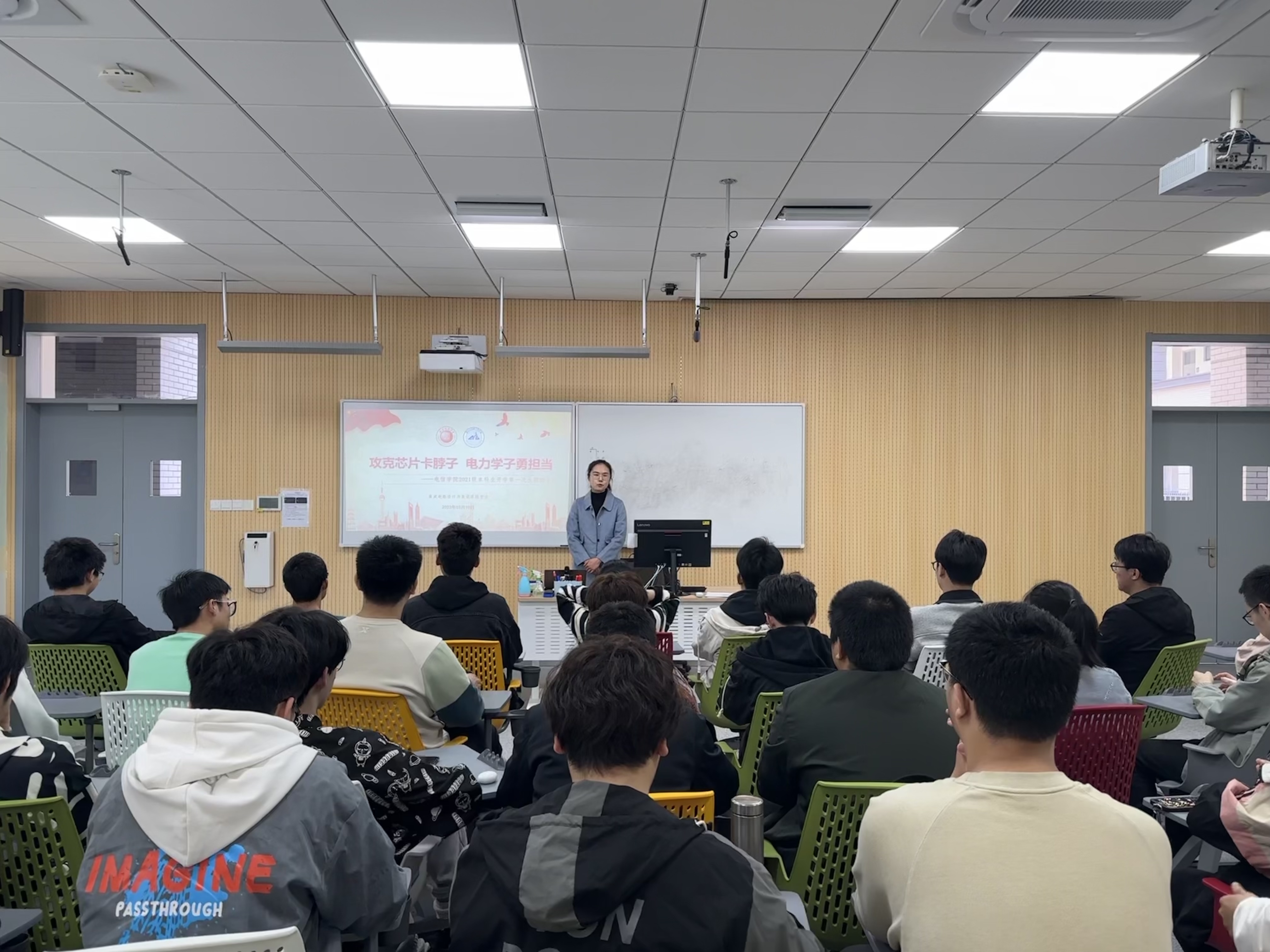 电子科学与技术专业教师刘伟景与辅导员黄燕共同策划开展了“党的二十大和我的人生路”第一次主题班会,刘老师娓娓道来我国集成电路的发展史,热爱国家、热爱集成电路行业的专家前辈在多方限制中艰苦奋斗。在党的领导,在国家的大力支持下,我国在集成电路领域有了飞速发展,过程虽坎坷,但前路光明,同学们生逢其时,大有可为。两位老师鼓励学生将自身发展融入祖国大业,胸怀报国之志,对接国家战略紧缺领域,扛起新时代青年的使命。