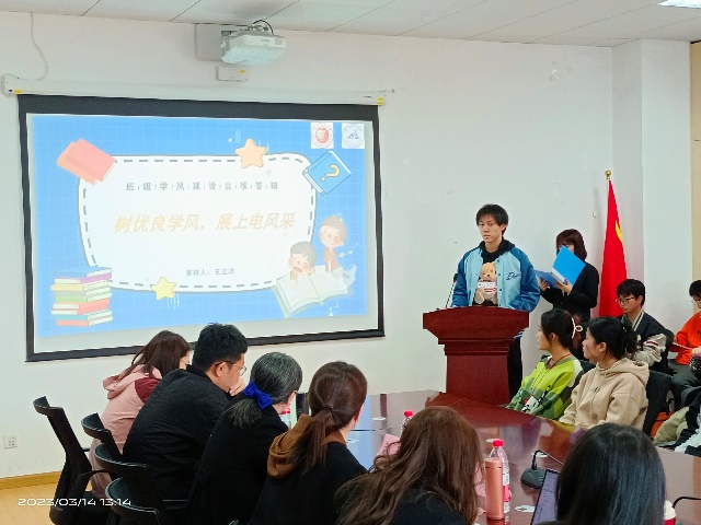 答辩过程中,各班级学生代表分别从当前班级的学风情况、建设方案、实施计划和项目预期等方面进行了详细的介绍,“学习狂飙小组”“班级网盘”“英文电影配音比赛”“走出校园探文化”“线上自习室”等各具特色的学风建设举措展现了同学们对于班级学风建设充足的规划和准备。在立项申请过程中同学们以问题为导向,充分调研,集思广益,明确目标,厘清计划,创新了学习监督奖励机制,充分发挥了学风建设中学生的主体作用,进一步强化了集体荣誉感和班级主人翁的意识。