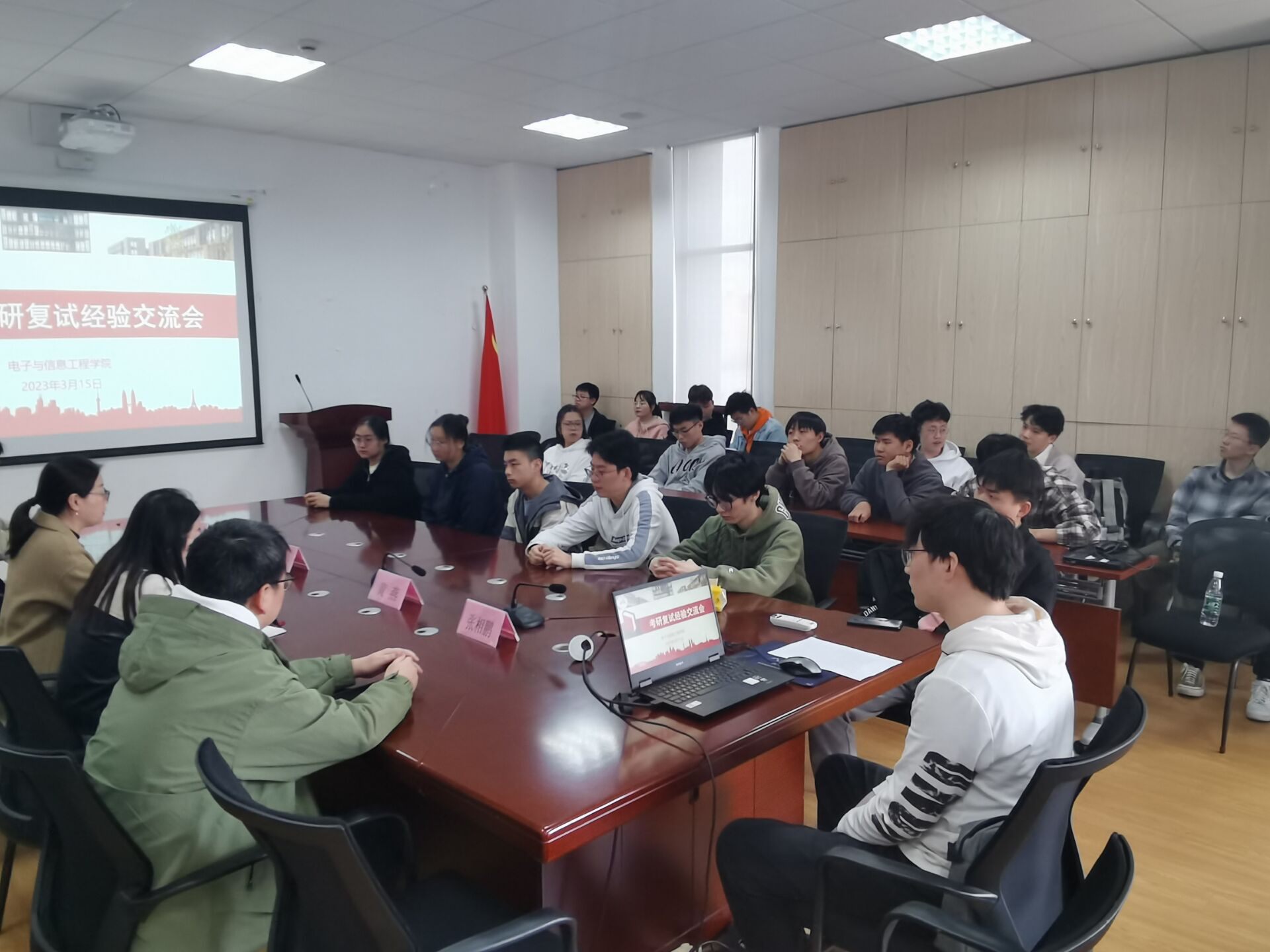为做好2023届毕业生考研复试、调剂服务工作,提高复试成功率,美加墨世界杯官方网站于3月15日以线上线下相结合的形式开展了考研复试经验交流会。会议邀请到来自电子科技大学、上海大学、上海理工大学以及世界杯官网的7位优秀校友分享复试经验,学院党委副书记周冬梅、光电信息科学与工程专业教师薛亮、就业专项负责人黄燕以及2023届考研学生参加此次活动。