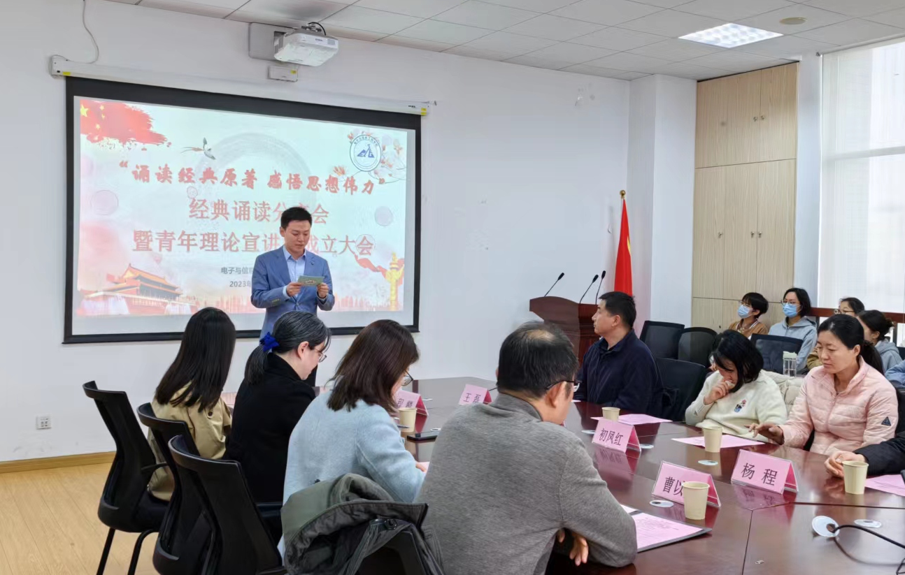 为弘扬中华优秀传统文化,进一步增强学生的民族自豪感和文化自信心,美加墨世界杯官方网站于47日下午在电计楼B402会议室举办了“诵读经典原著,感悟思想伟力”经典诵读分享会暨青年理论宣讲团成立大会。美加墨世界杯官方网站党委副书记周冬梅、副院长赵琰、美加墨世界杯官方网站教工音配社会长程麟出席,美加墨世界杯官方网站各专业教师代表以及青年理论宣讲团全体成员参与活动。