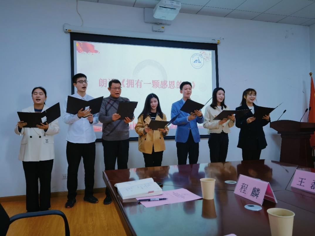 最后在舒缓的音乐声中程麟与美加墨世界杯官方网站师生集体朗诵了《拥有一颗感恩的心》。